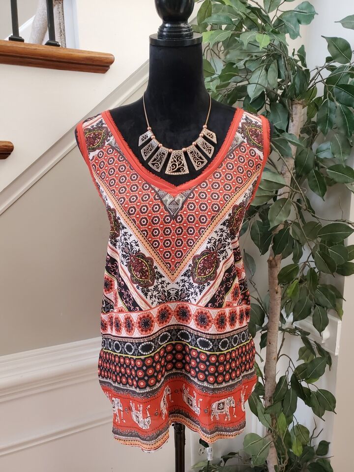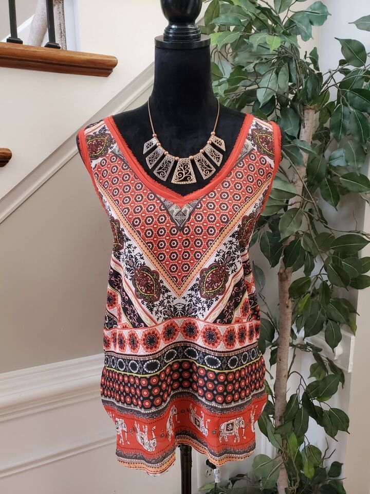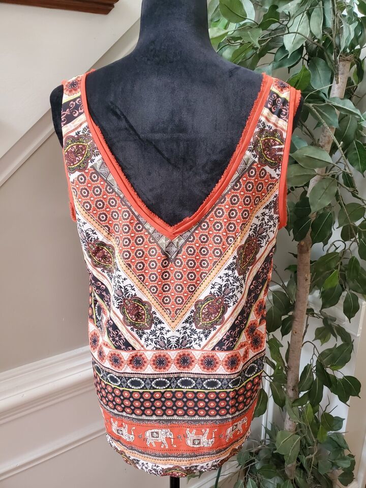 Love on a Hanger Women Orange 100% Polyester V Neck Sleeveless Top Blouse Size L