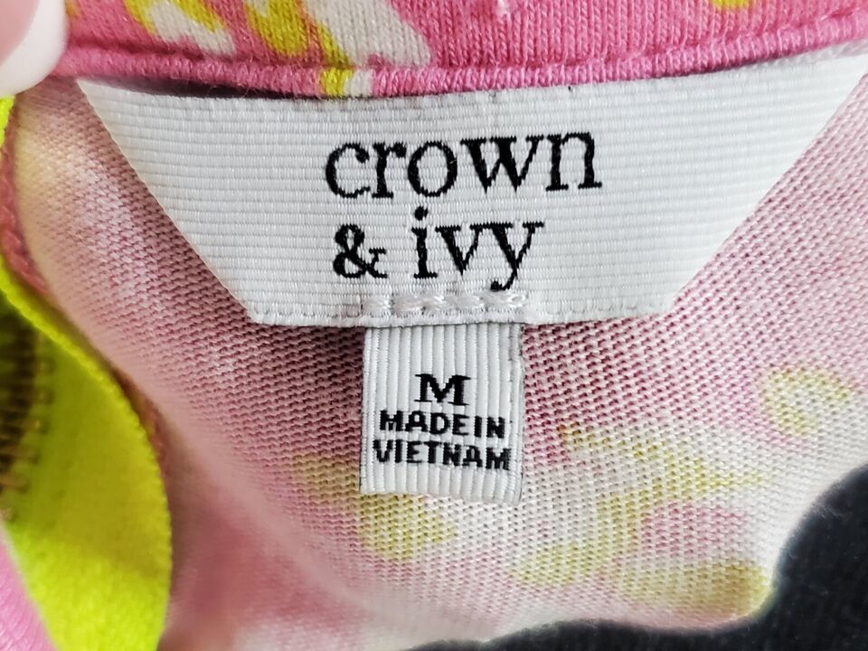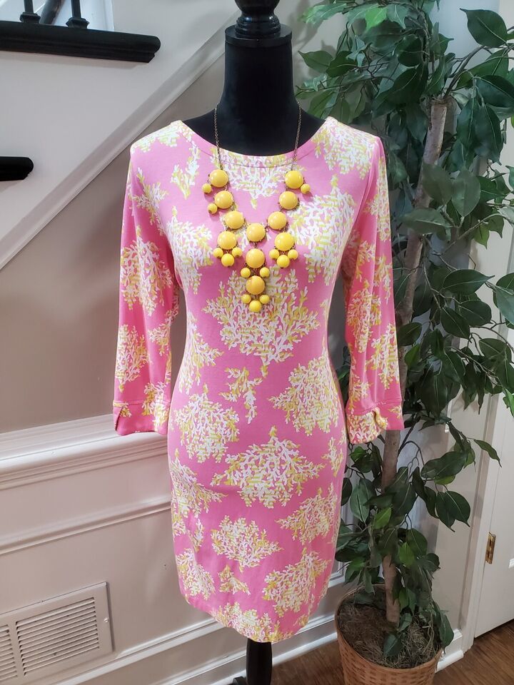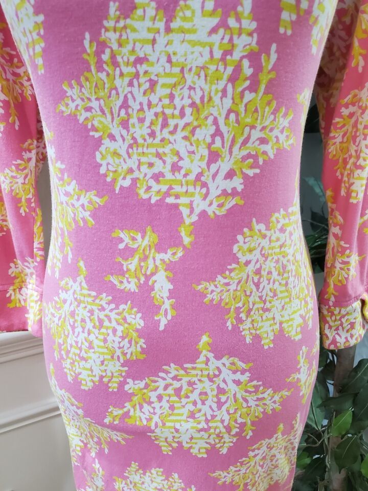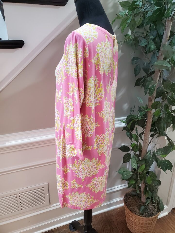 Crown Ivy Women's Pink Cotton Round Neck Long Sleeve Knee Length Dress Size M.