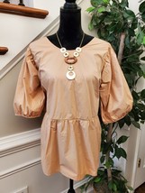 Blue Tassel Women's Tan 100% Cotton Round Neck 3/4 Sleeve Blouse Top Size 3X