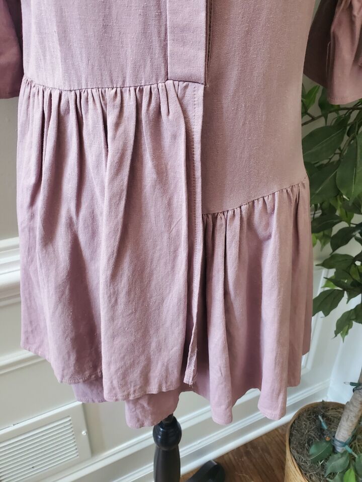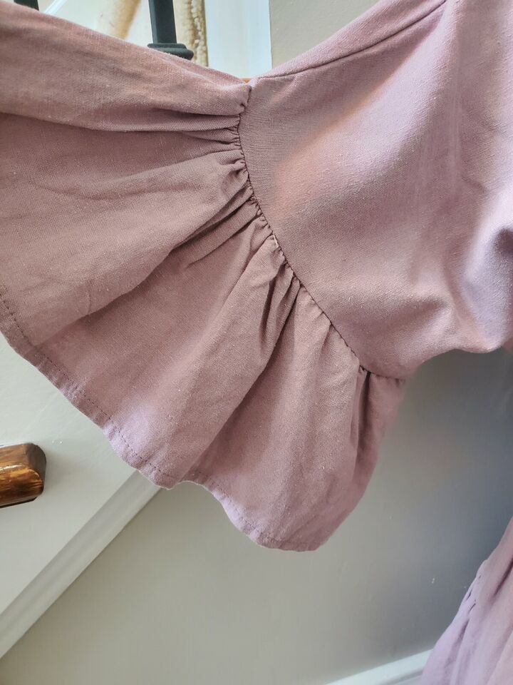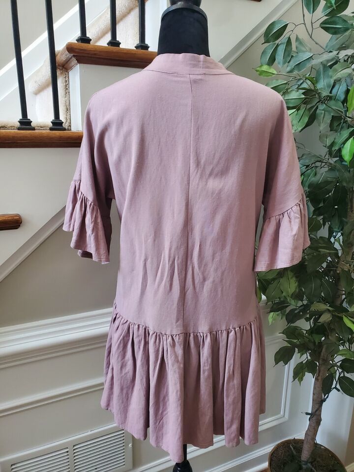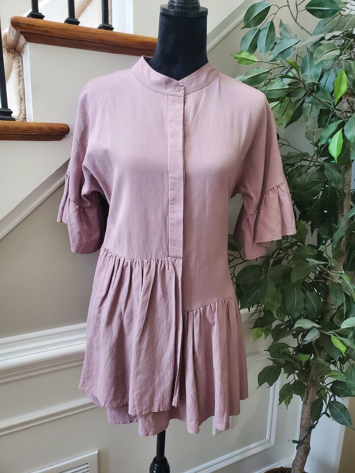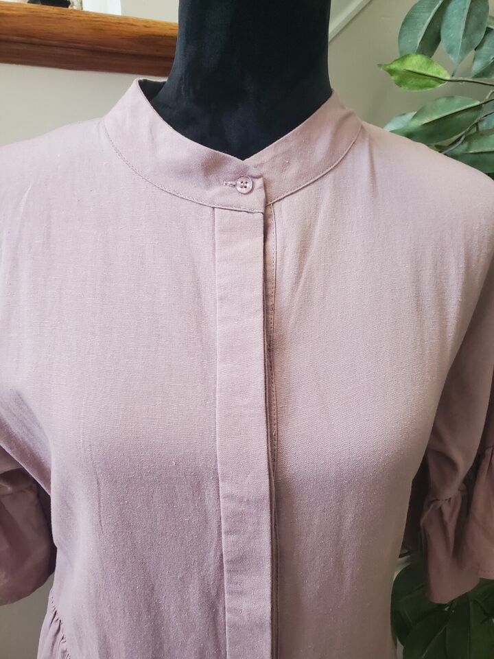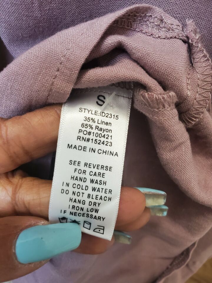Day Night Women's Purple Linen Rayon 3/4 Sleeve Button Down Top Size Small