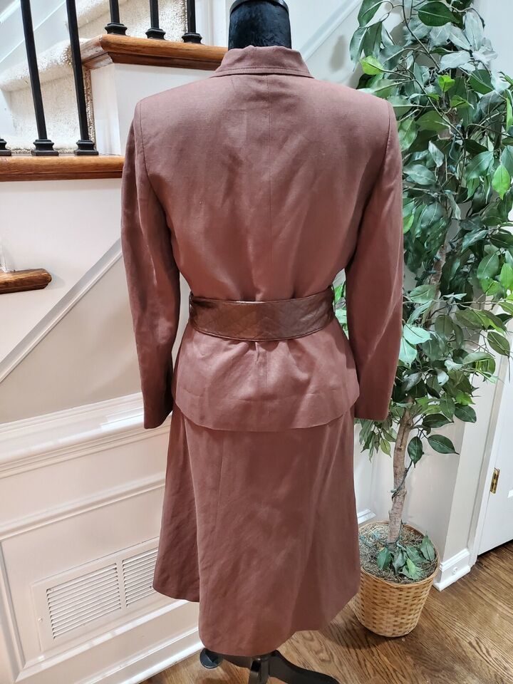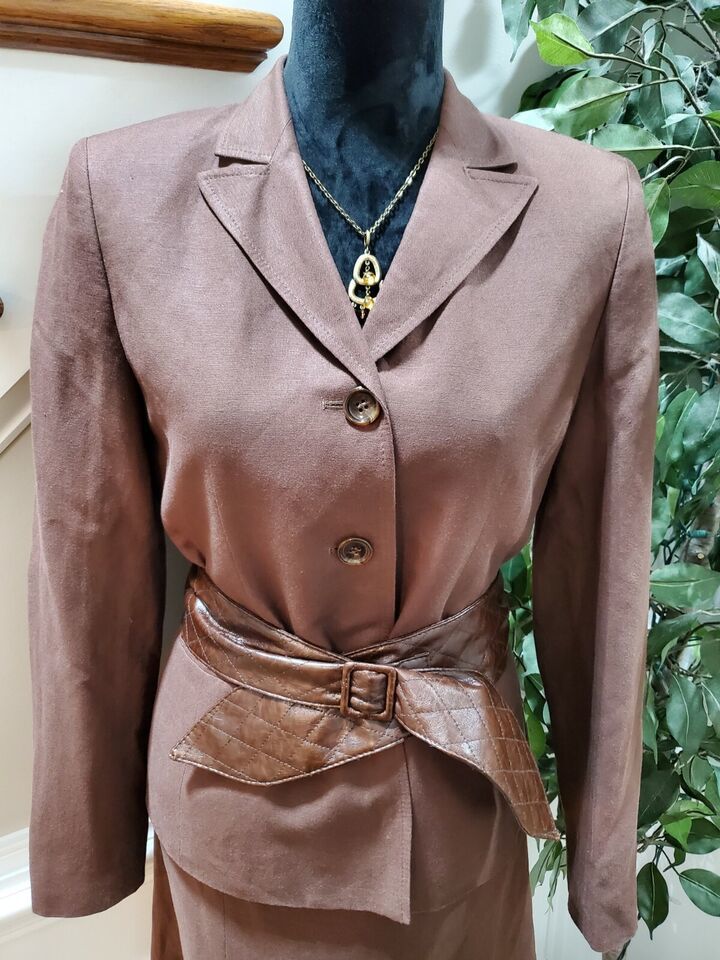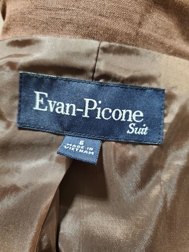 Evan Picone Women's Brown Linen Rayon Long Sleeve Jacket Skirt 2 Piece Suit 6