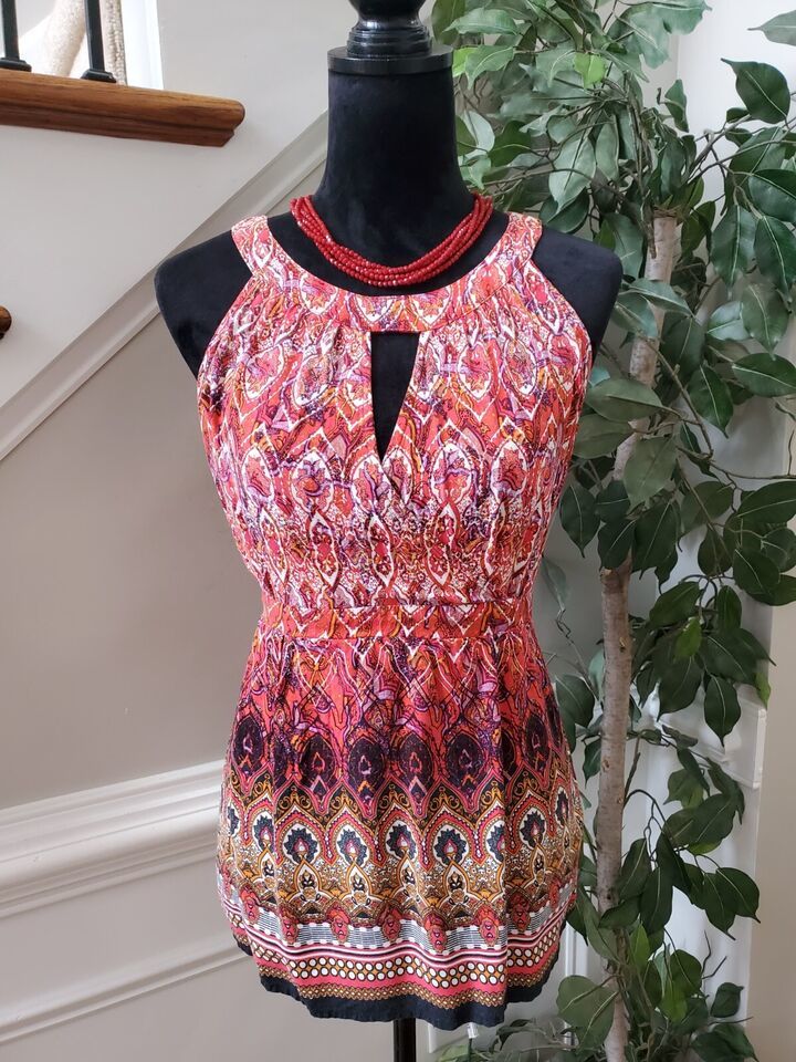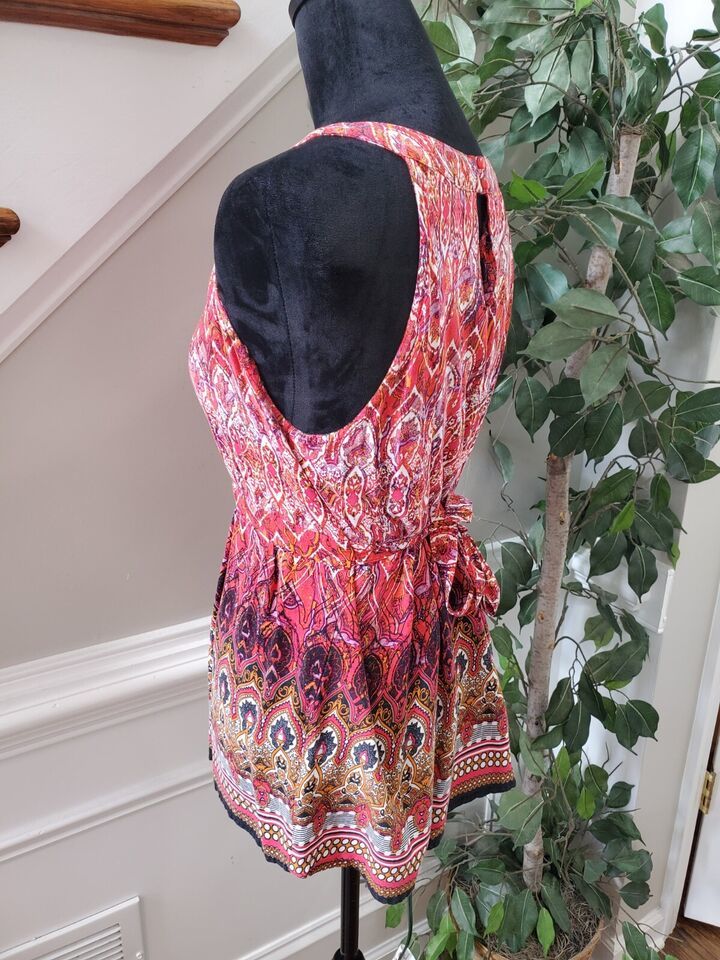 Cato Womens Multicolor 100% Rayon Round Neck Sleeveless Top Blouse Size Large.