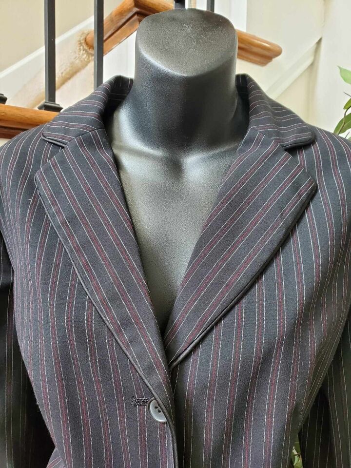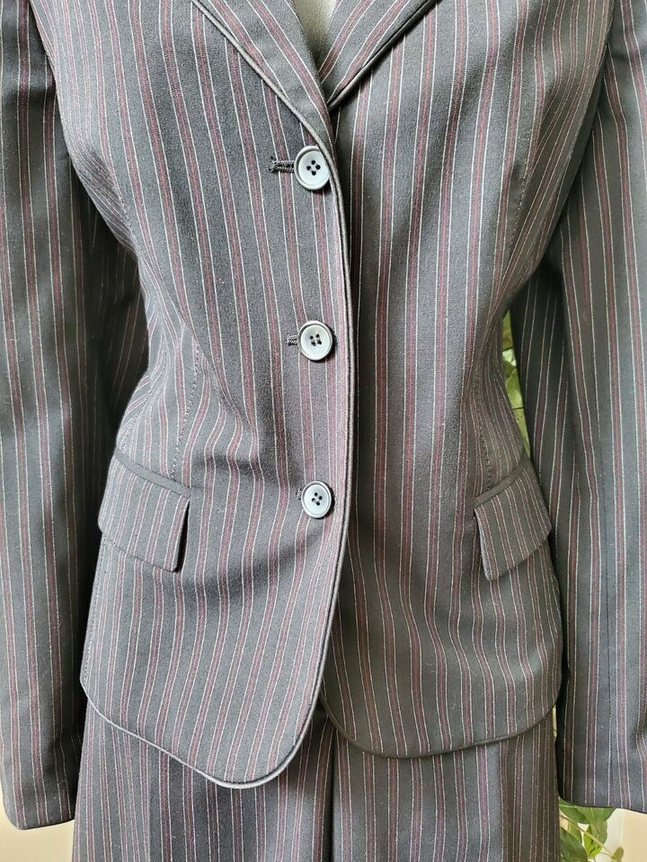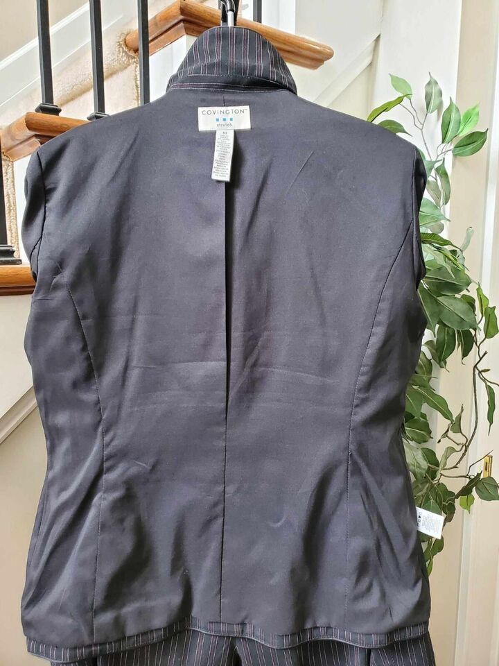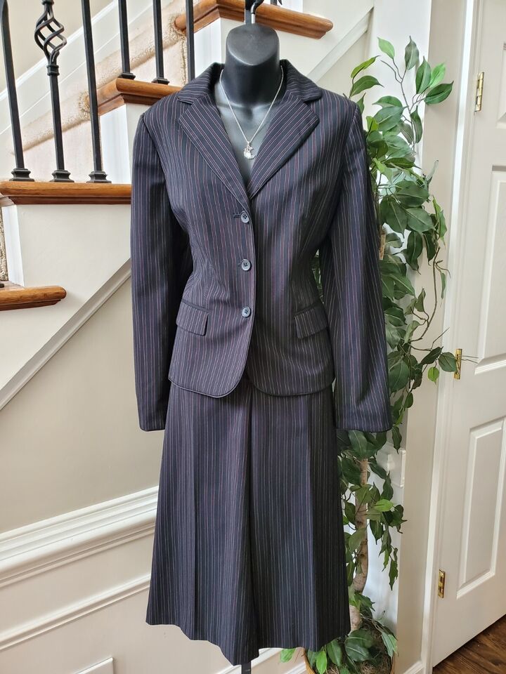 Covington Blue Striped Polyester Single Breasted Blazer & Skirt 2 Piece Suit 10