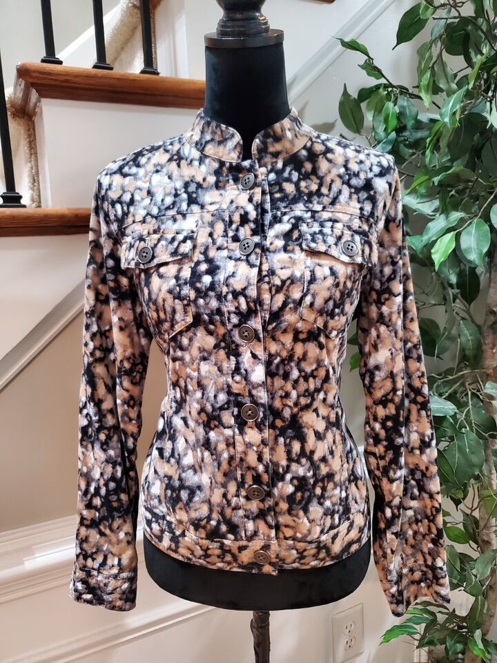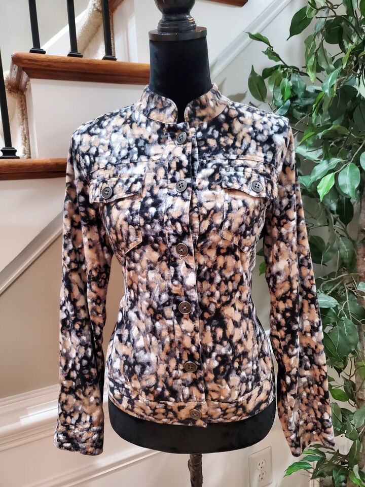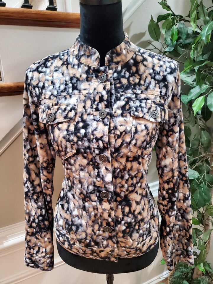 Christopher & Banks Softshell Multicolor 100% Cotton Button Front Jacket Size S