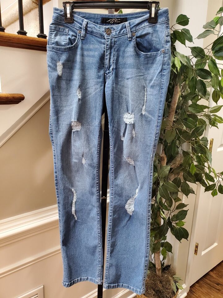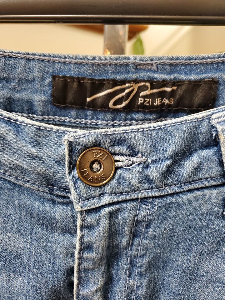 PZI Women's Blue Denim Cotton Mid Rise Straight Jeans Casual Pants Size 8 Short