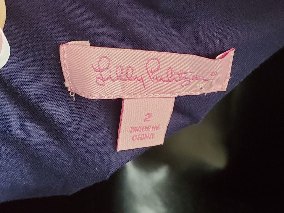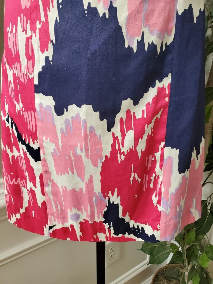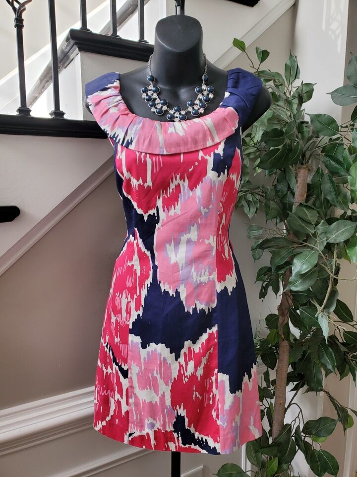 LILLY PULITZER Women Blue Pink Ruffle Boat Neck Sleeveless Knee Length Dress 2