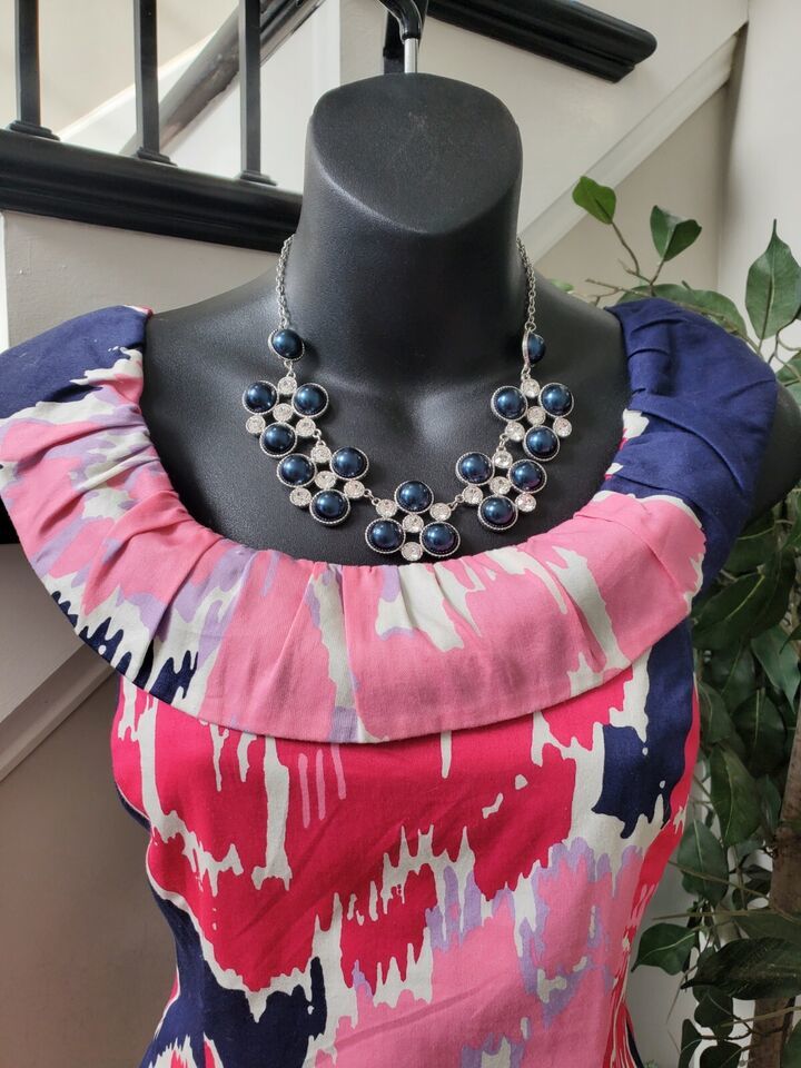 LILLY PULITZER Women Blue & Pink Ruffle Boat Neck Sleeveless Knee Length Dress 2
