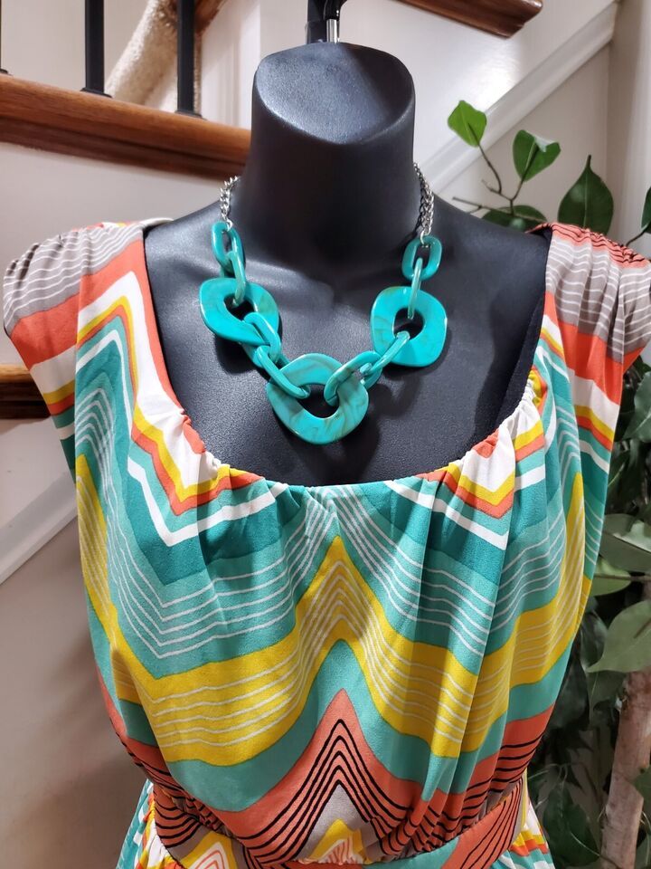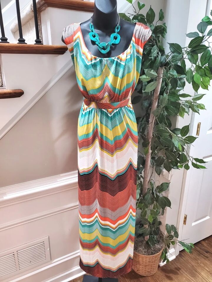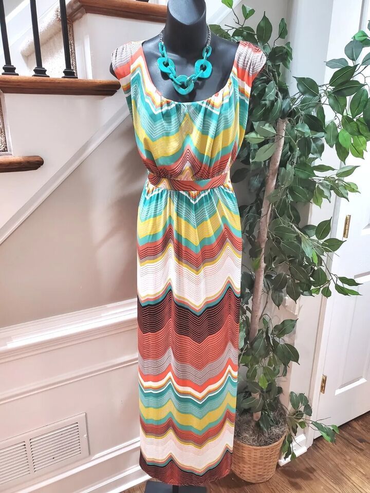 Worthington Women's Multicolor Polyester Round Neck Sleeveless Long Maxi Dress L