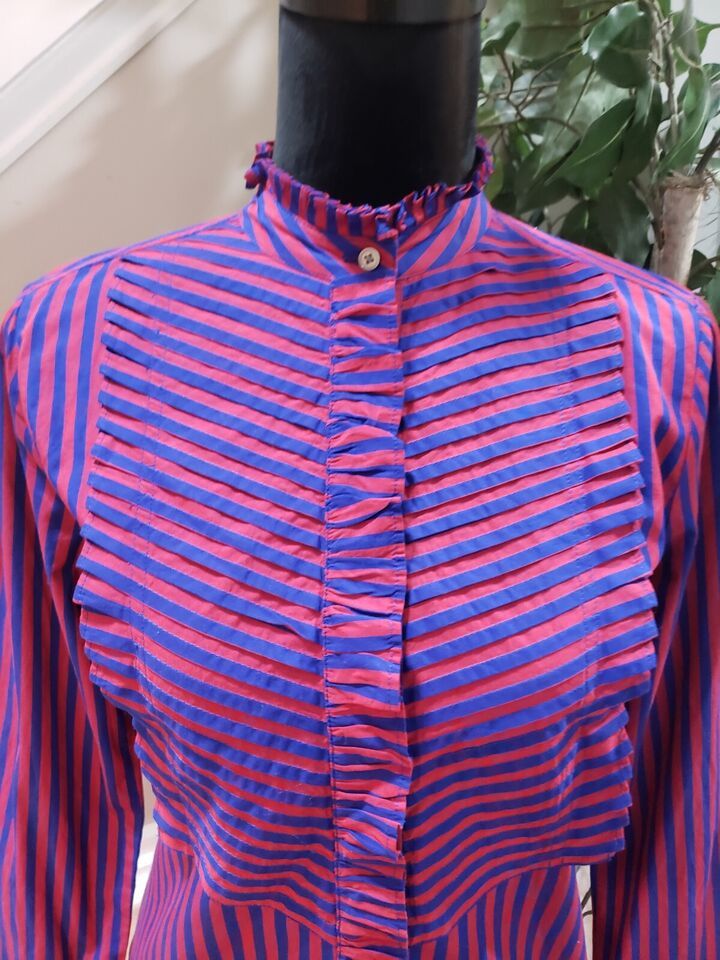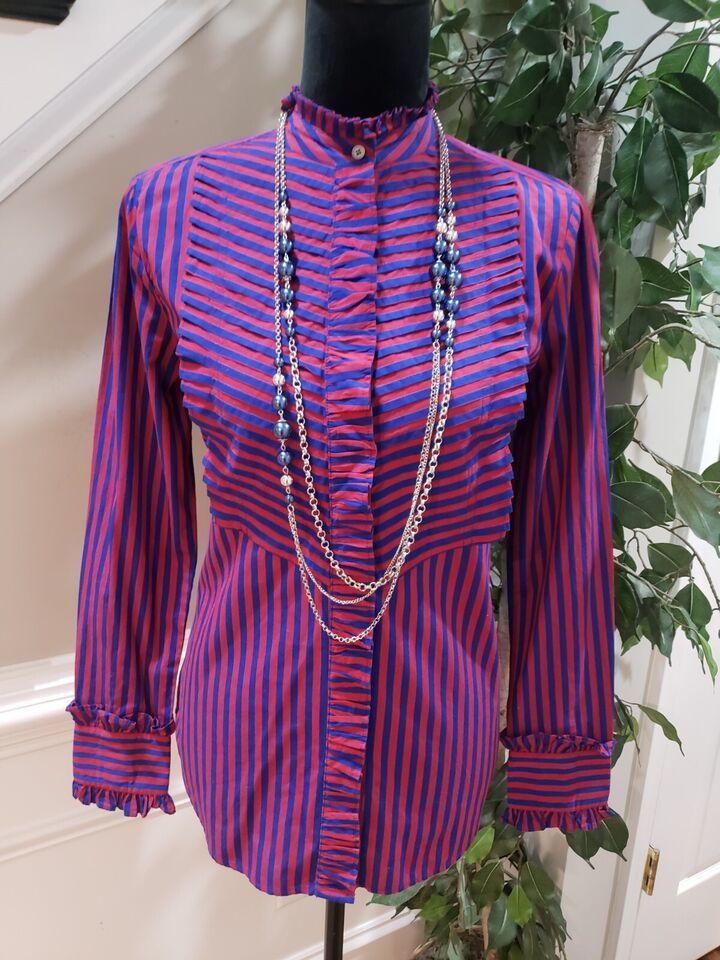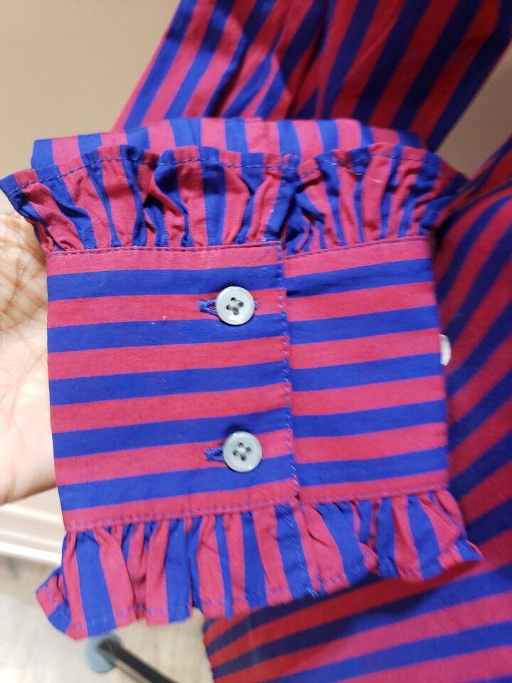 J. Crew Red & Blue Striped Long Sleeve Ruffle Trim Tuxedo Top Blouse XS