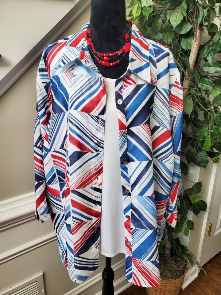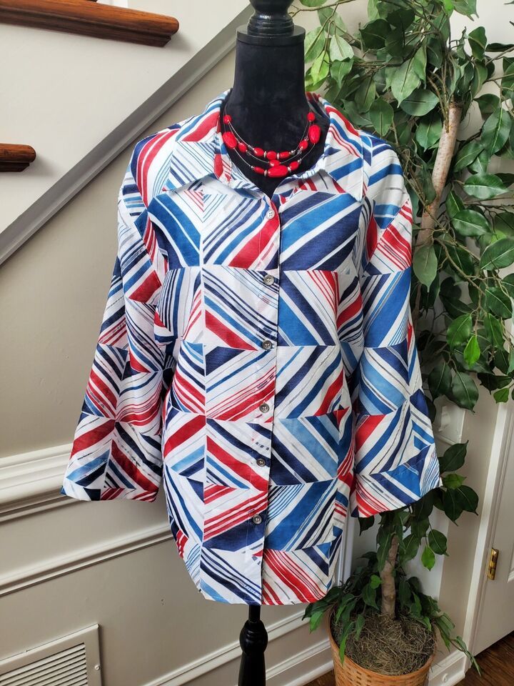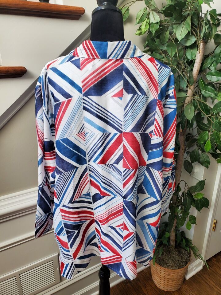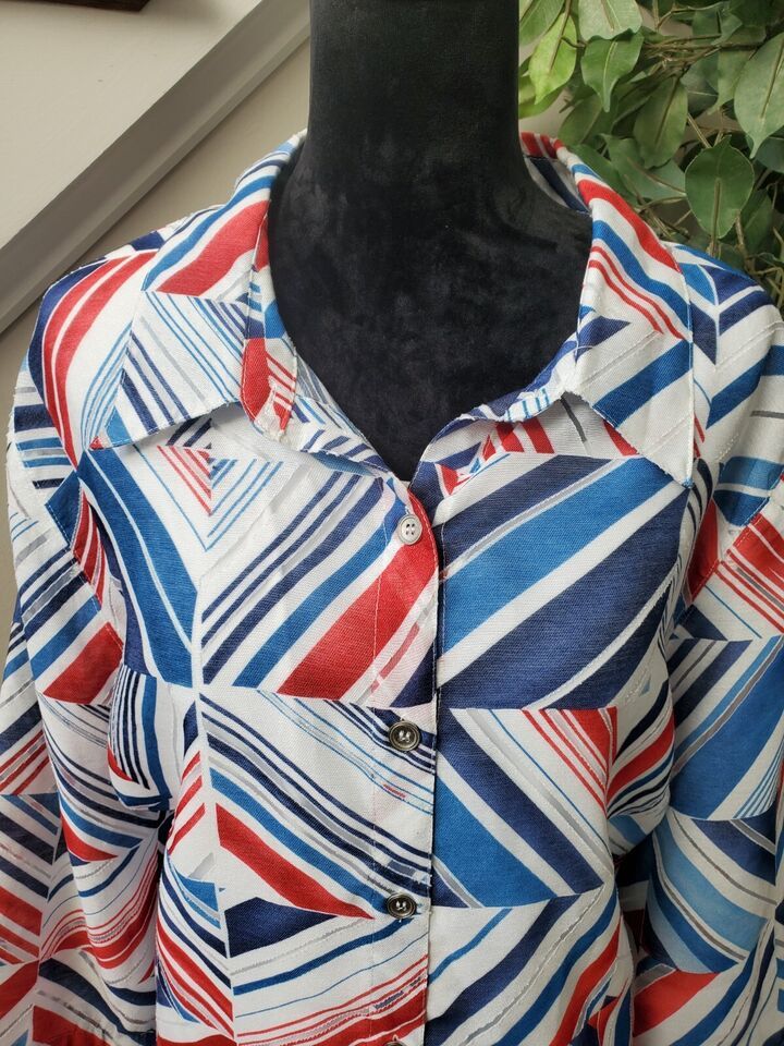 Alfred Dunner Women Multicolor Rayon Collared Long Sleeve Buttons Down Shirt 24W