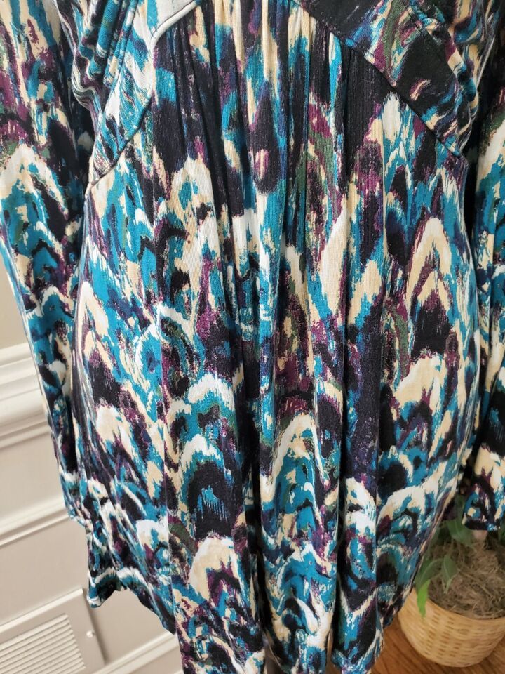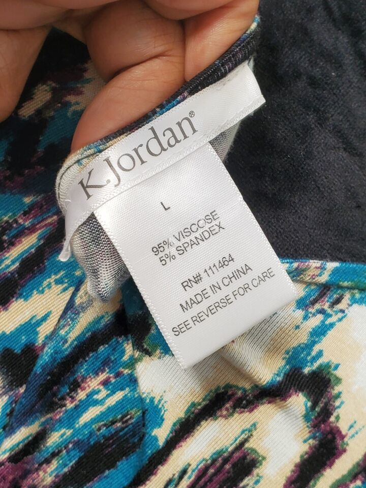 K.Jordan Women's Multicolor Viscose V-Neck Long Sleeve Pullover Blouse Size L.