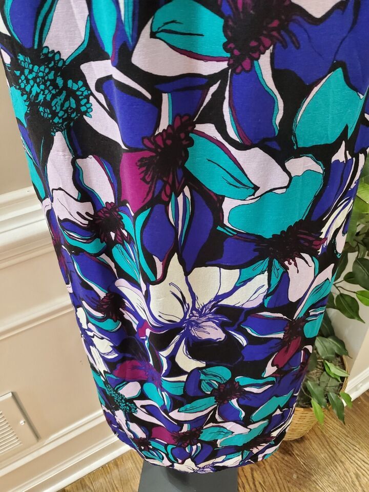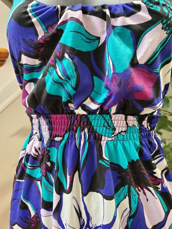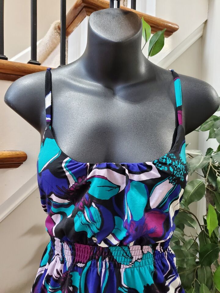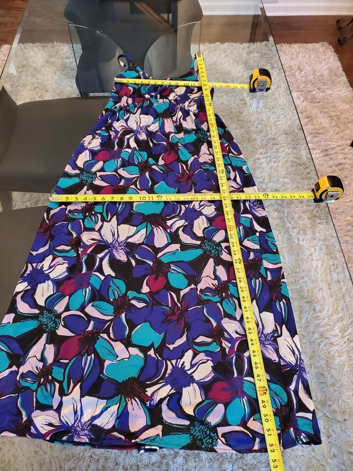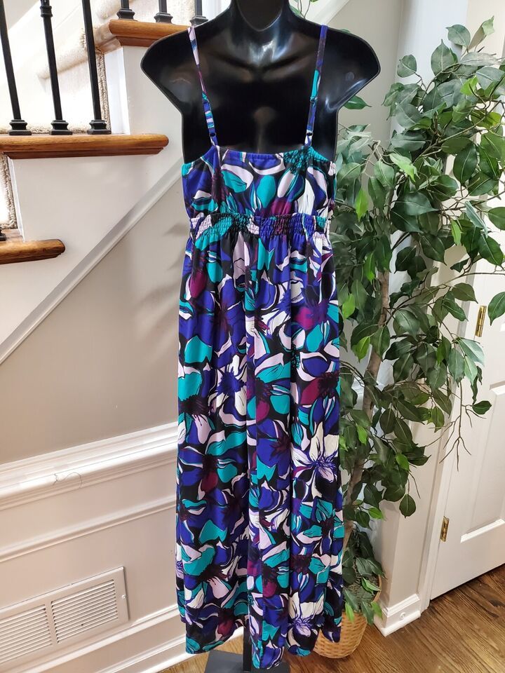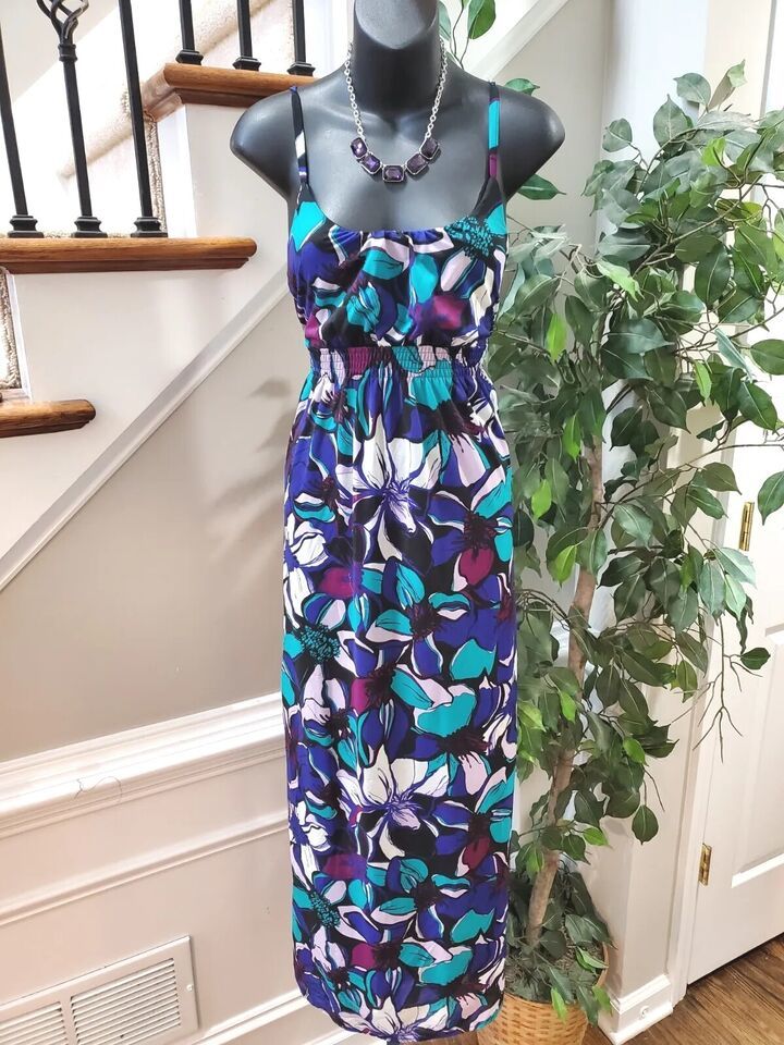 Elle Women's Blue Floral Polyester Scoop Neck Sleeveless Long Maxi Dress Small