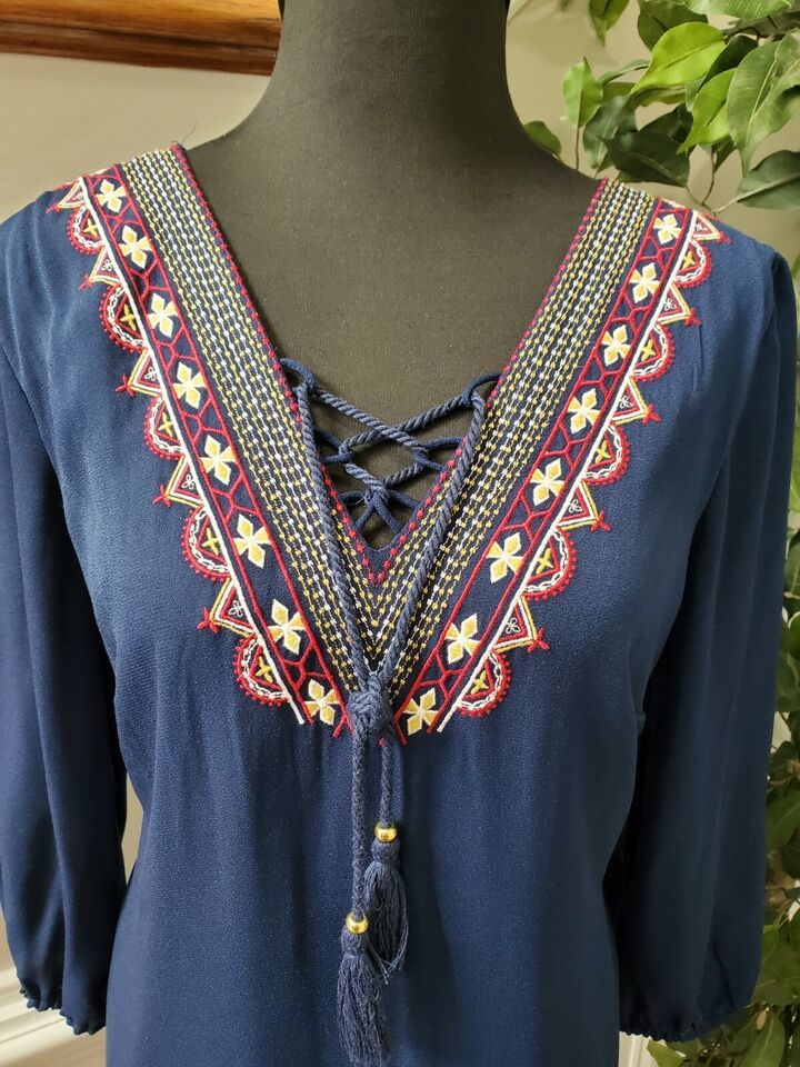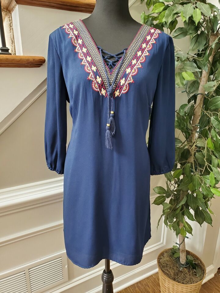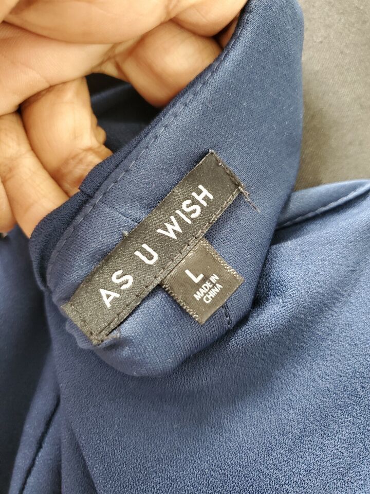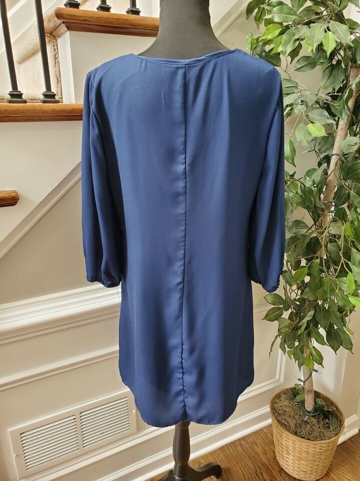 As U Wish Women Blue 100% Polyester V-Neck Long Sleeve Knee Length Dress Size L