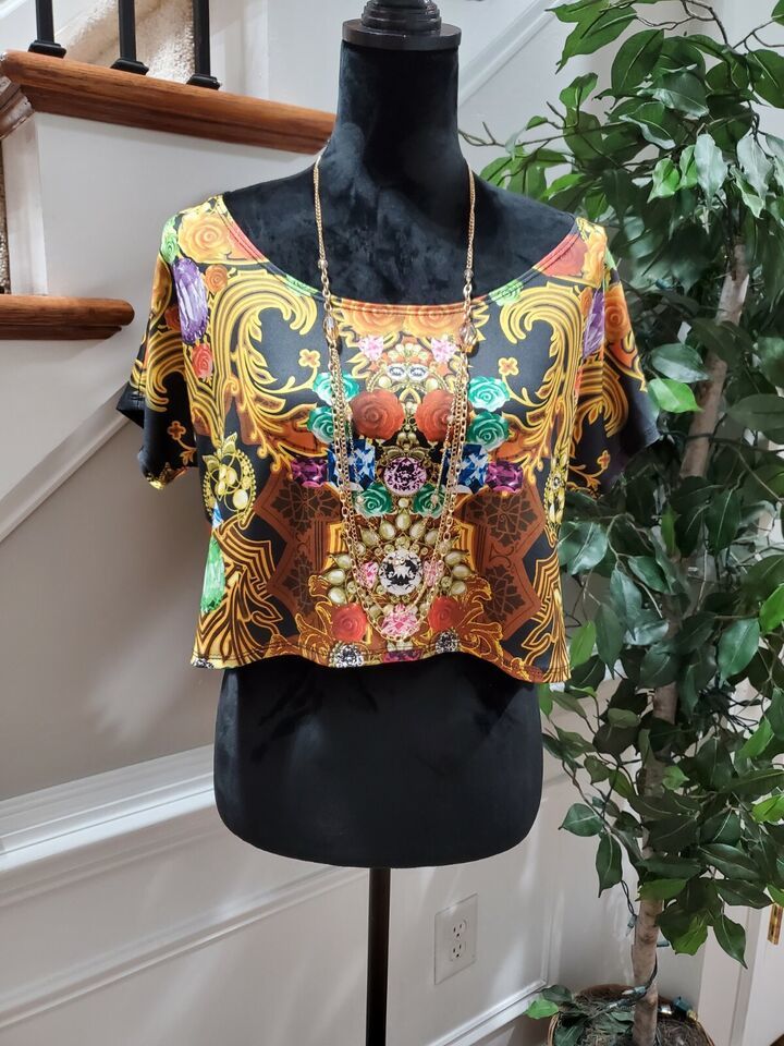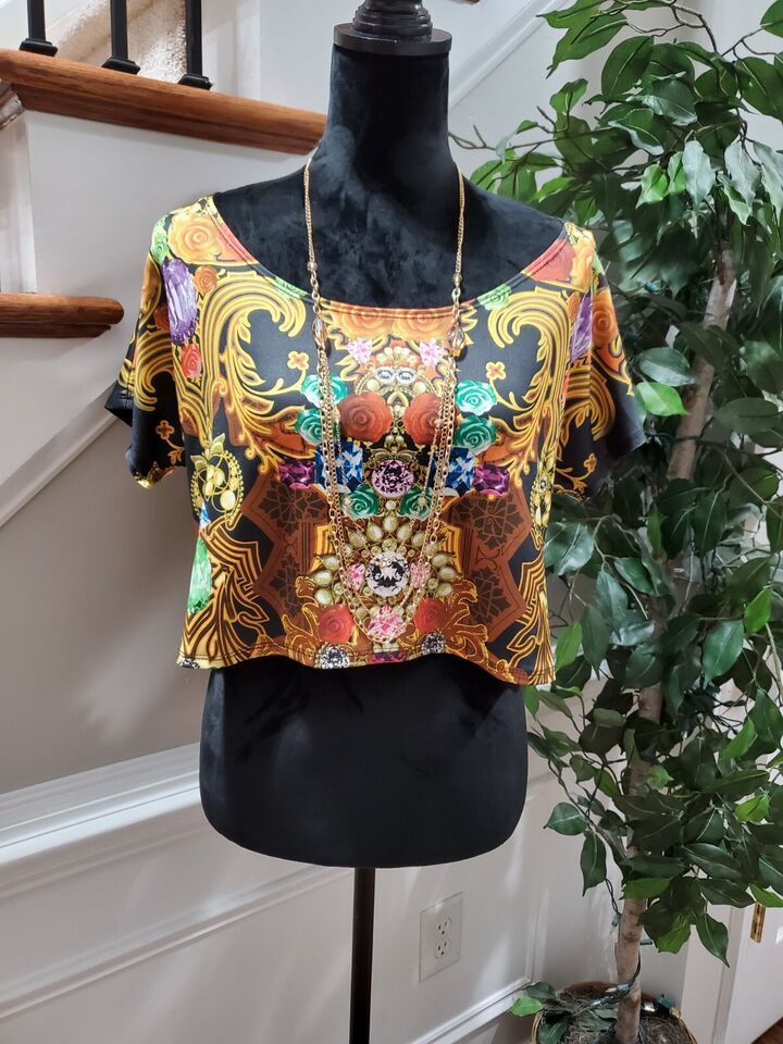 Boutique Women's Multicolor Polyester Round Neck Short Sleeve Blouse Size Large