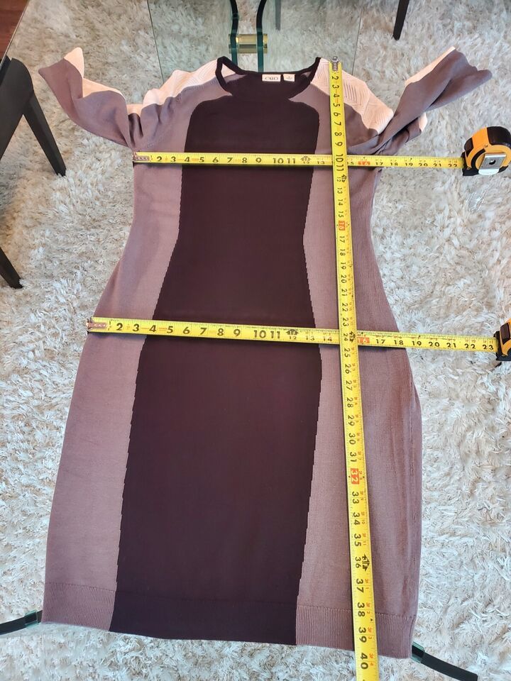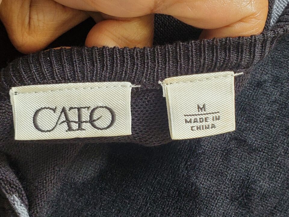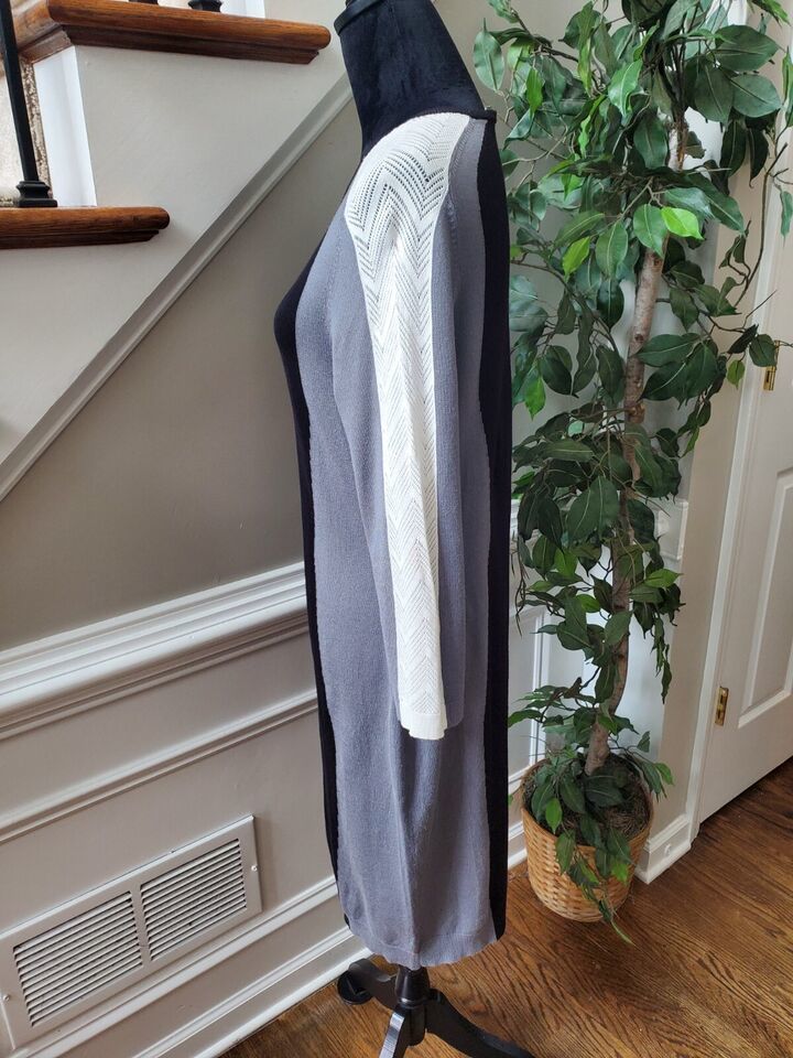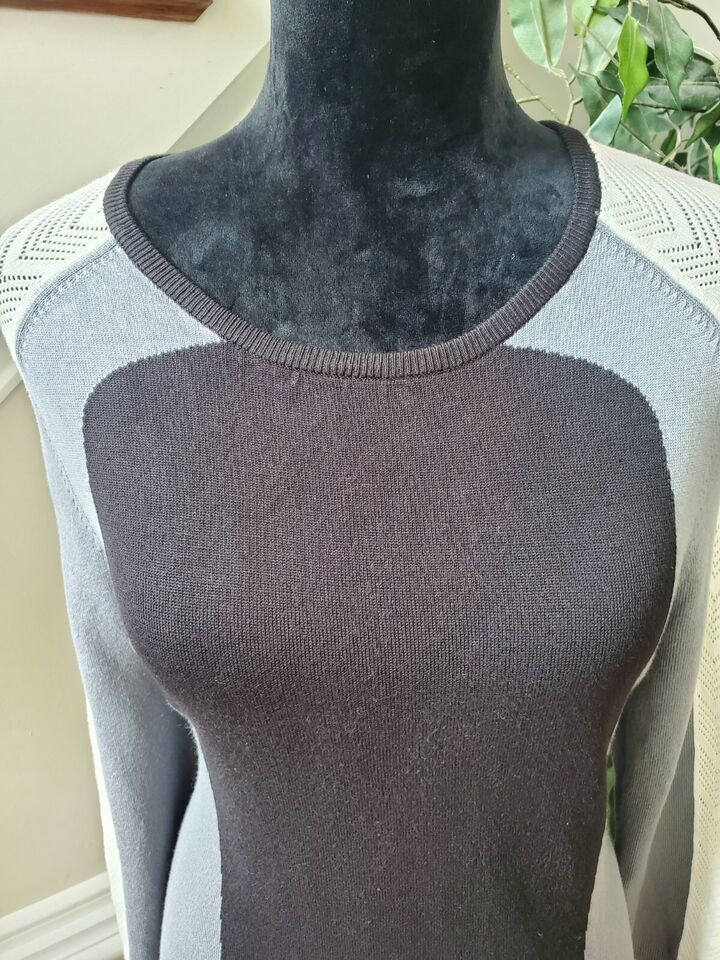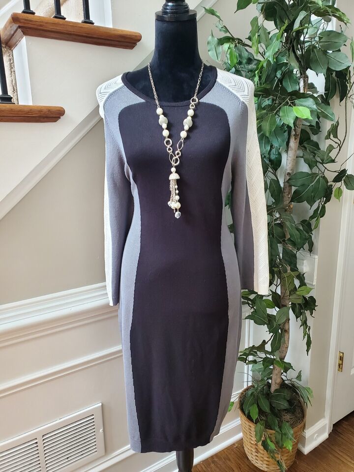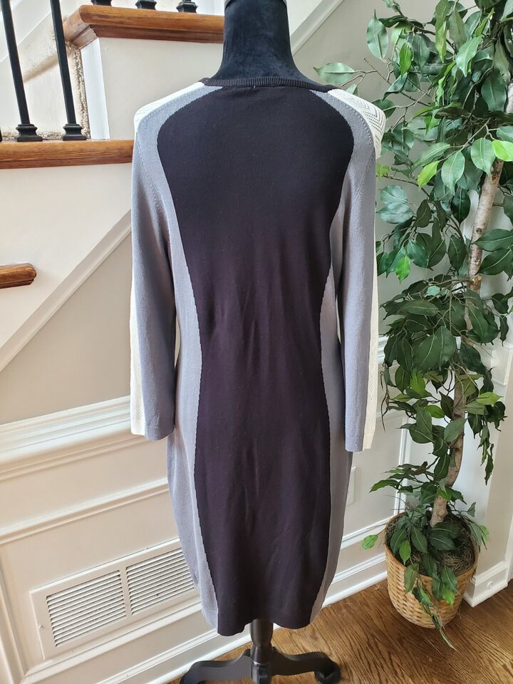 Cato Women's Black & Gray Polyester Round Neck Long Sleeve Knee Length Dress M