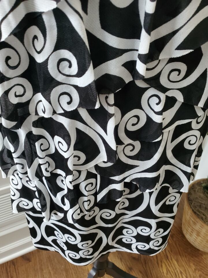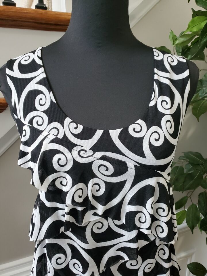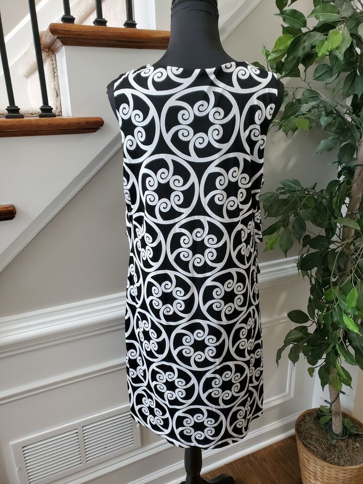 Madison Women's Black & White 100% Nylon Sleeveless Knee Length Dress Size Large