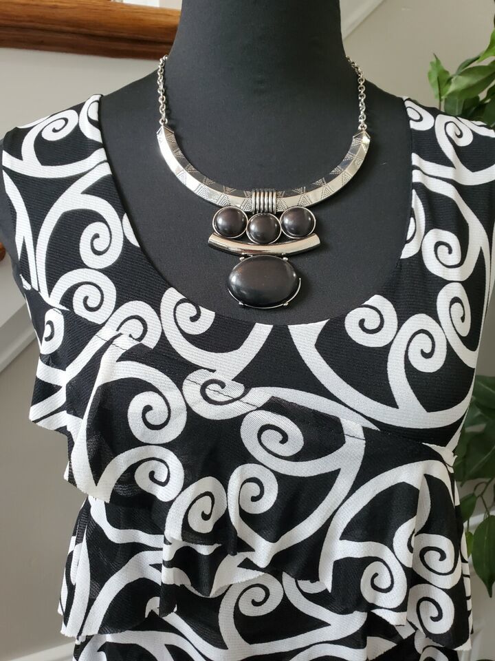 Madison Women's Black White 100% Nylon Sleeveless Knee Length Dress Size Large.