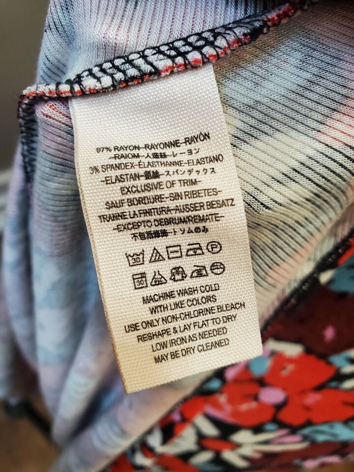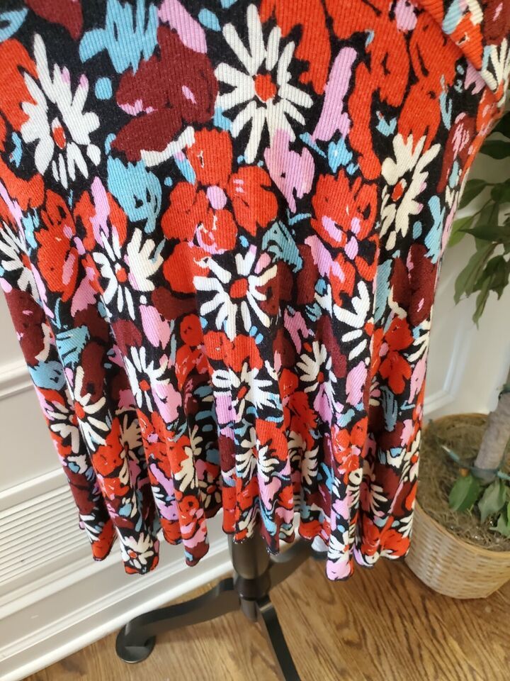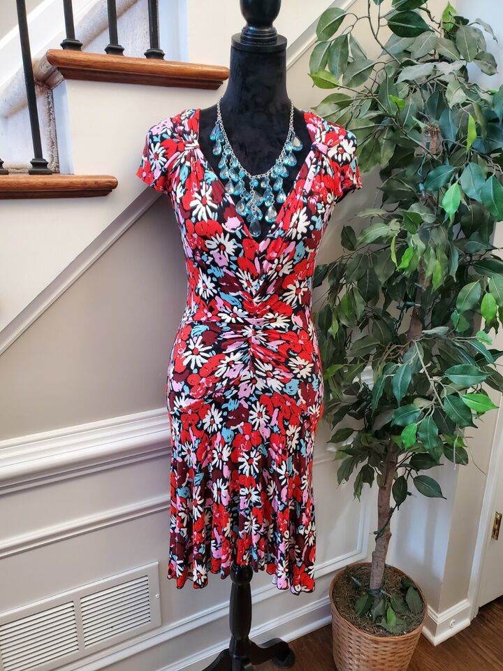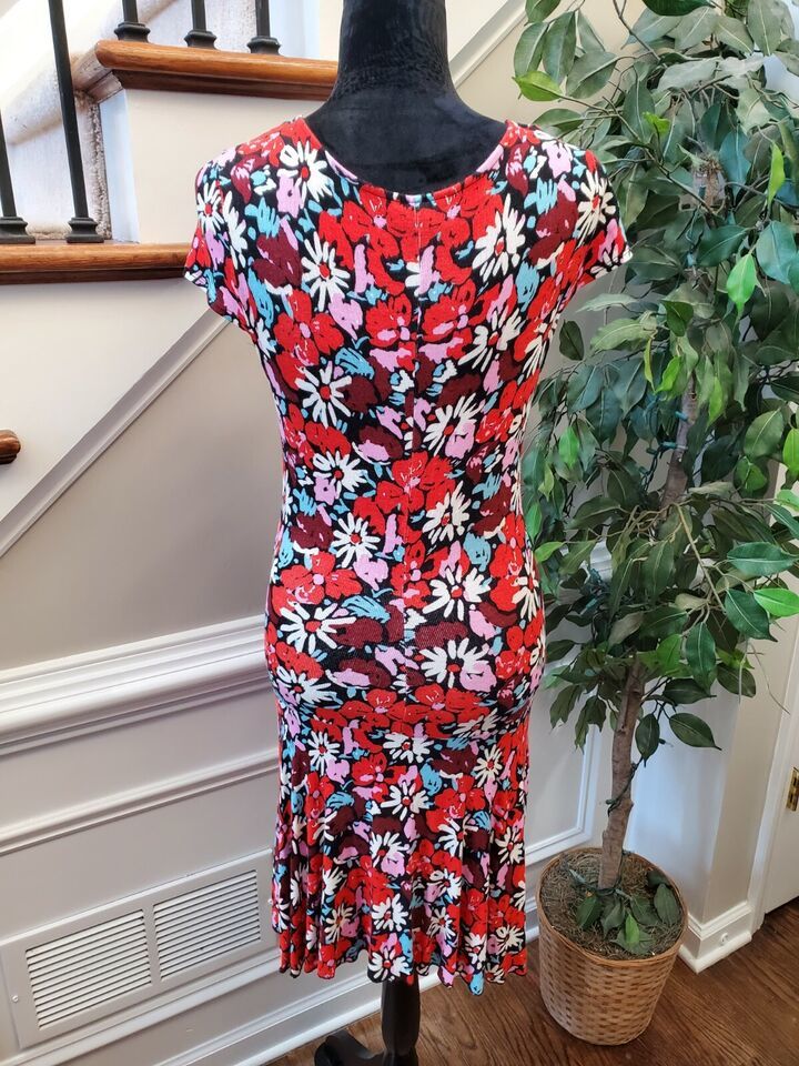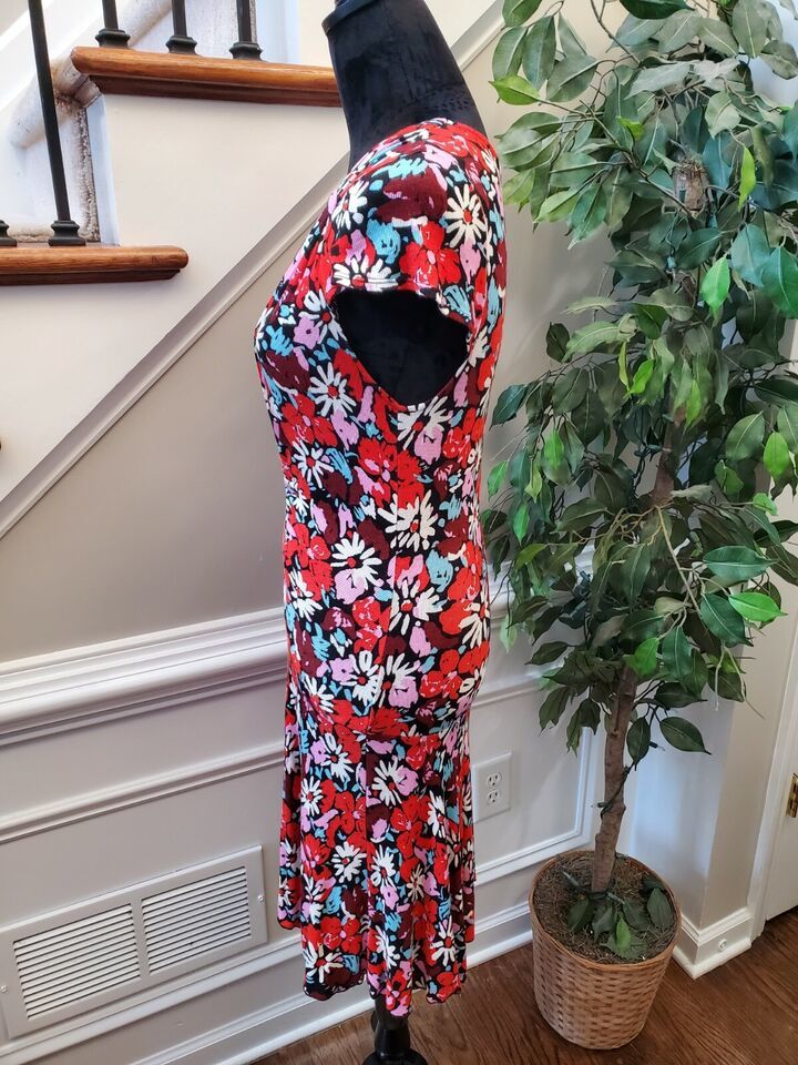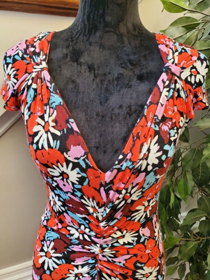 Free People Women Red Floral Rayon V-Neck Short Sleeve Knee Length Dress Size M