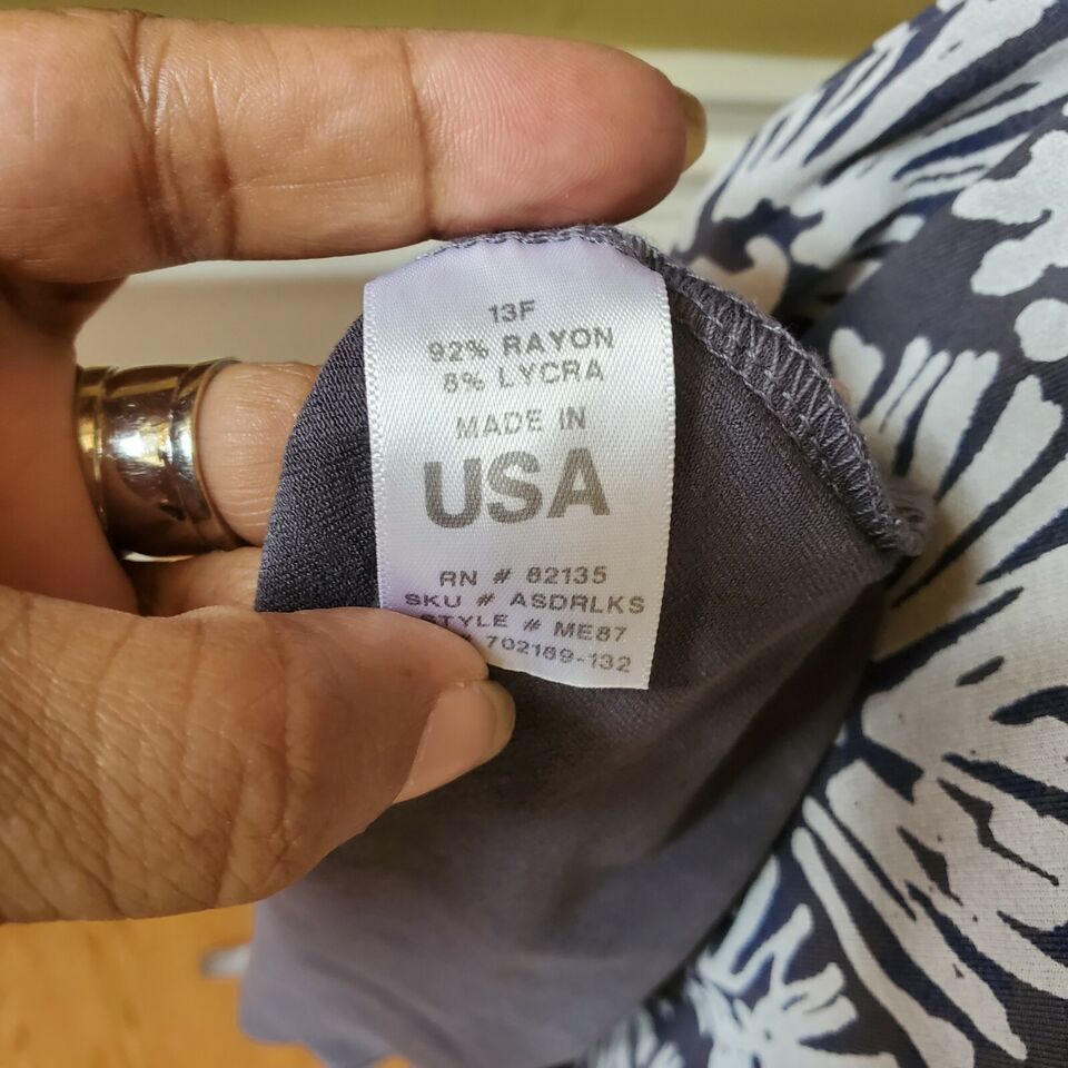 Fresh Produce XS/34 Dress Gray White Surplice Empire Waist Cap Slv Shell Print