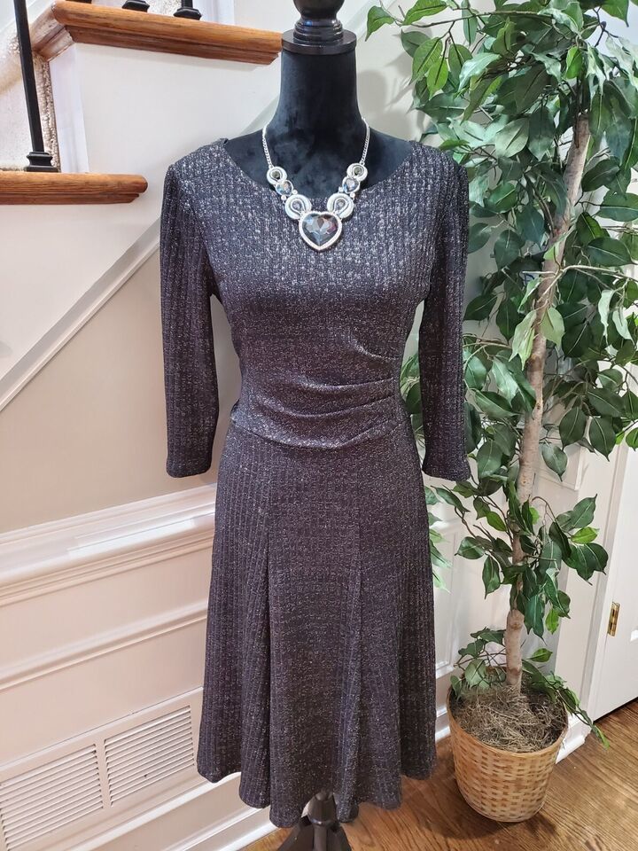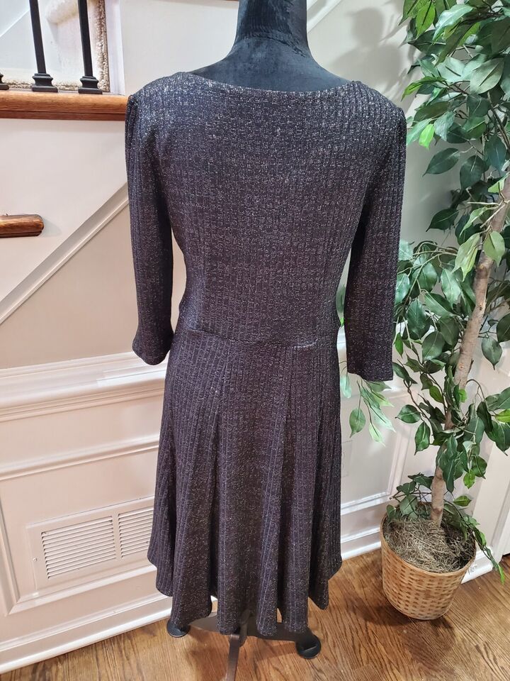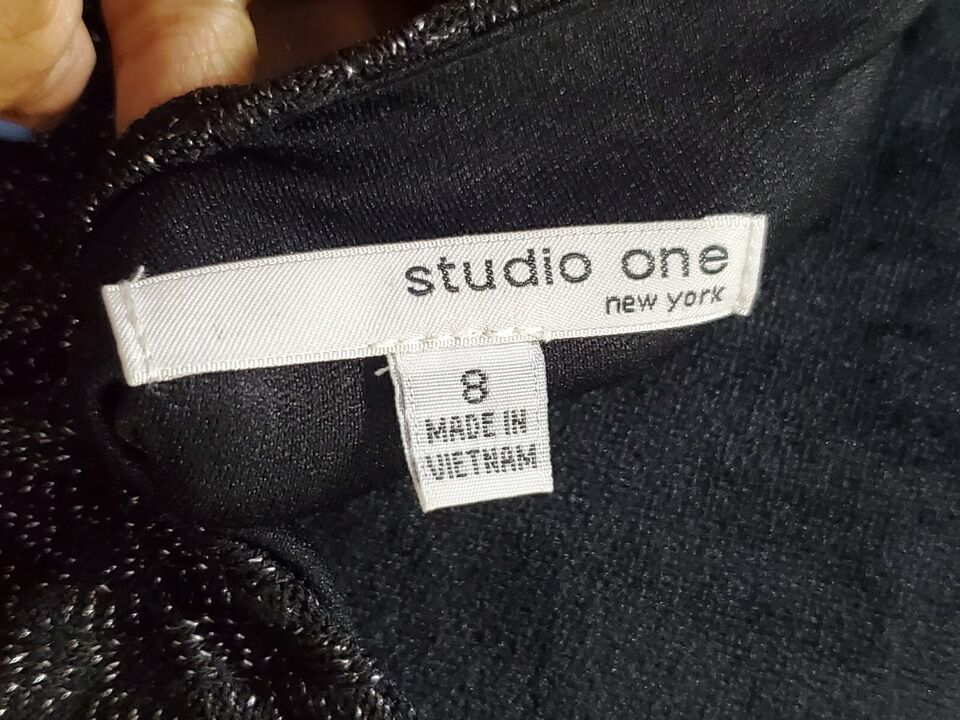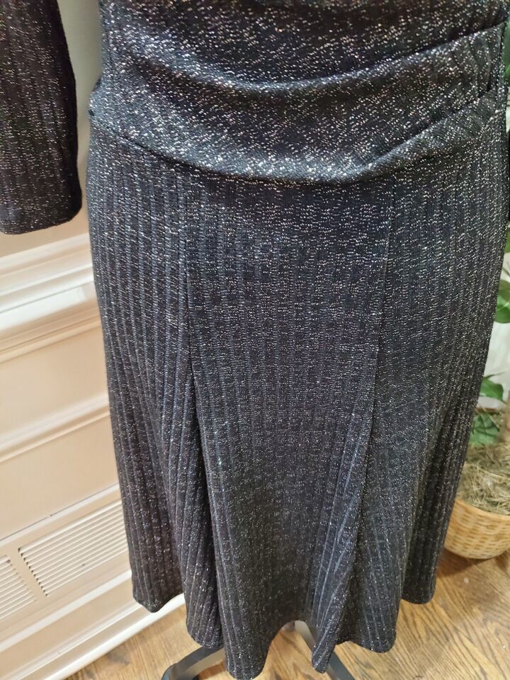 Studio 1 Women's Black Polyester Round Neck Long Sleeve Knee Length Dress Size S