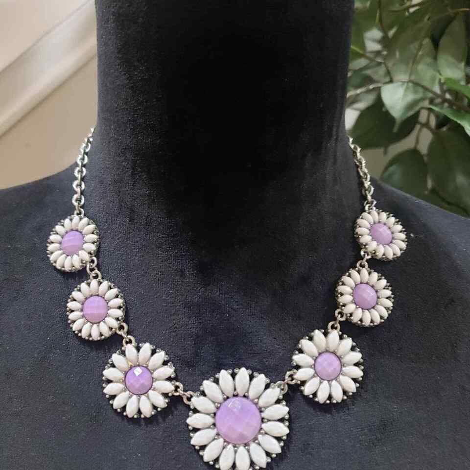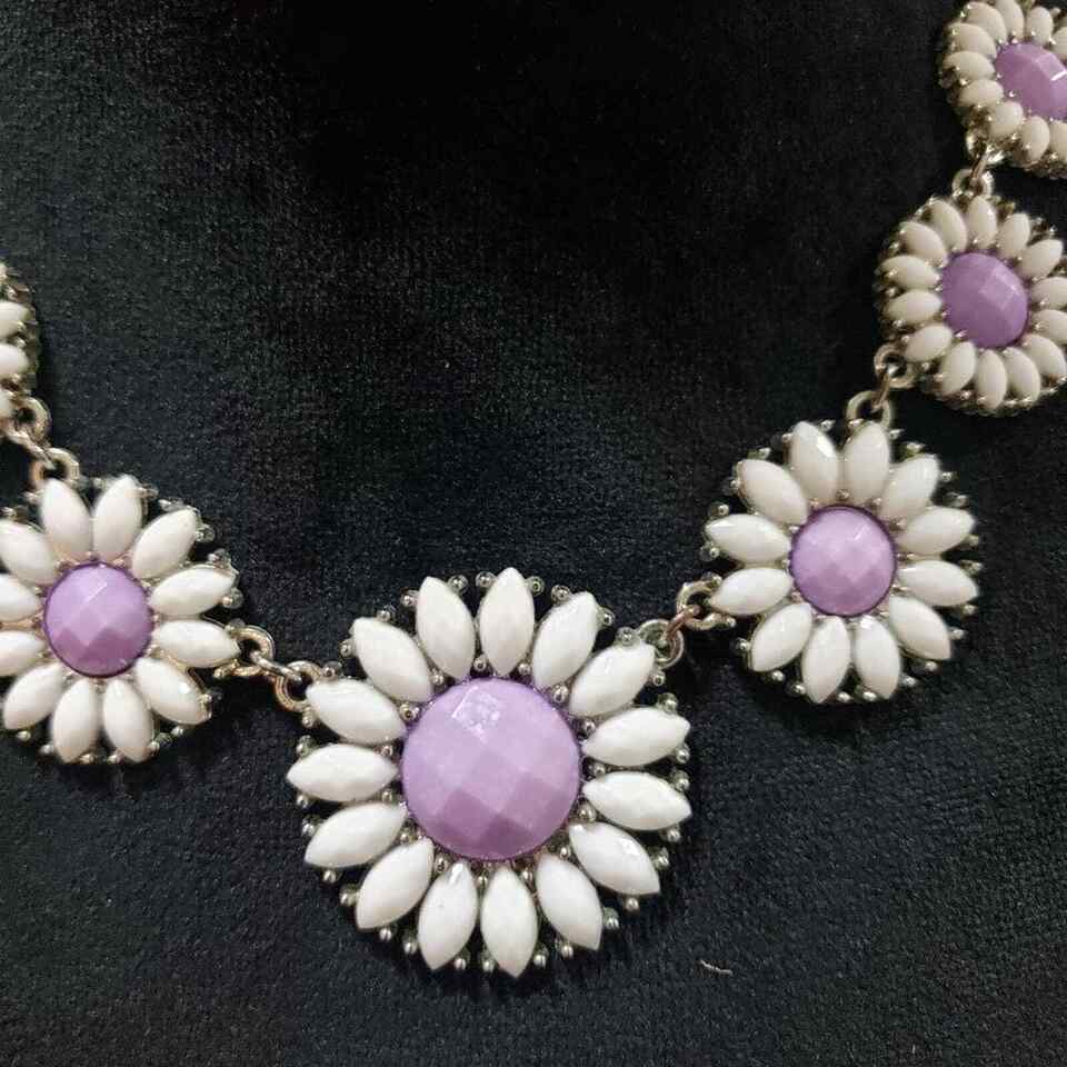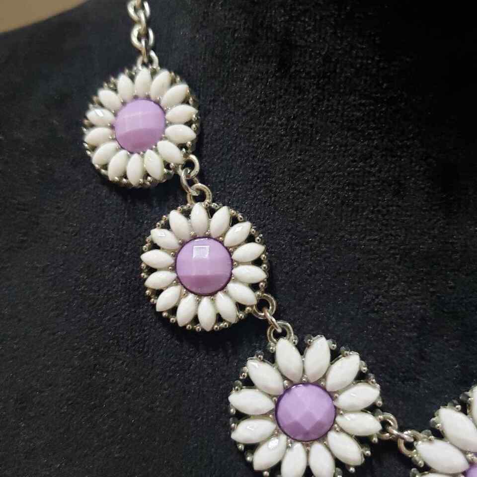 Women's Charming Charlie White Purple Sun flower Daisy Statement Lobster Clasp Necklace