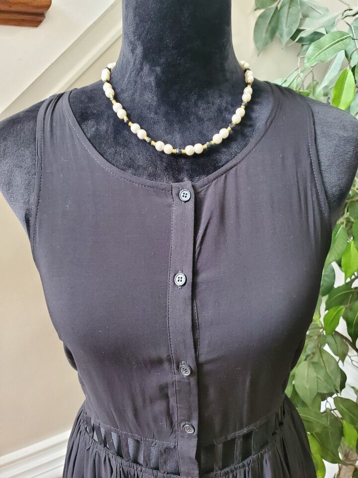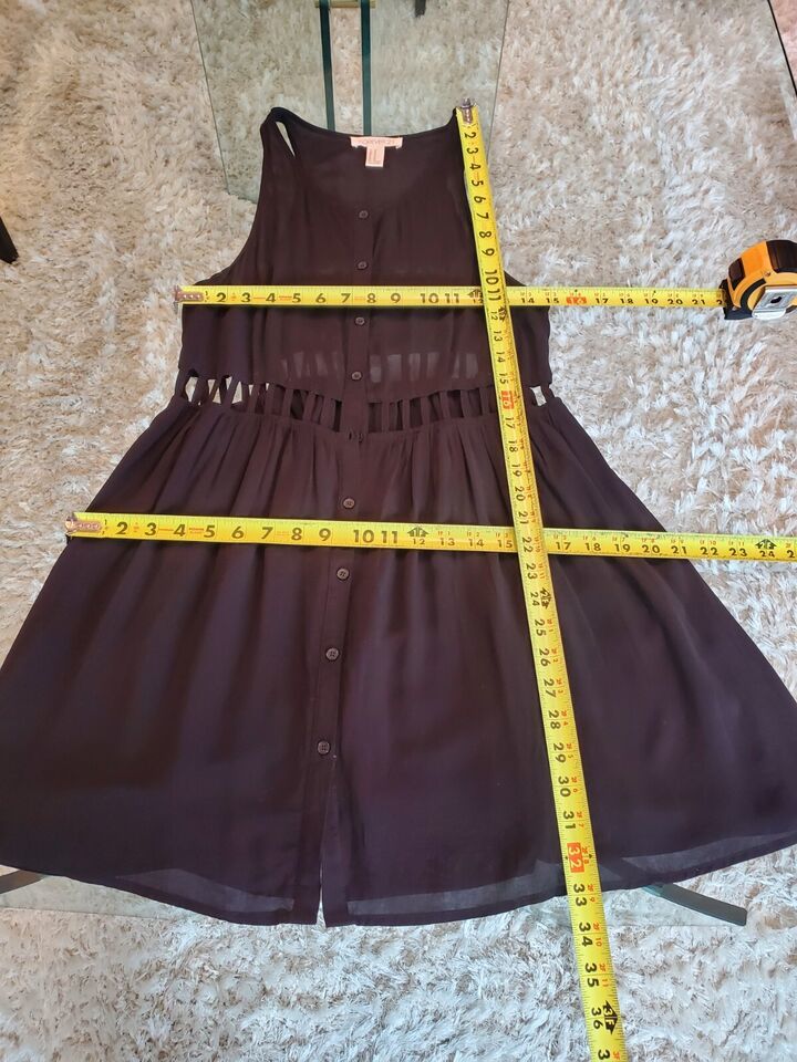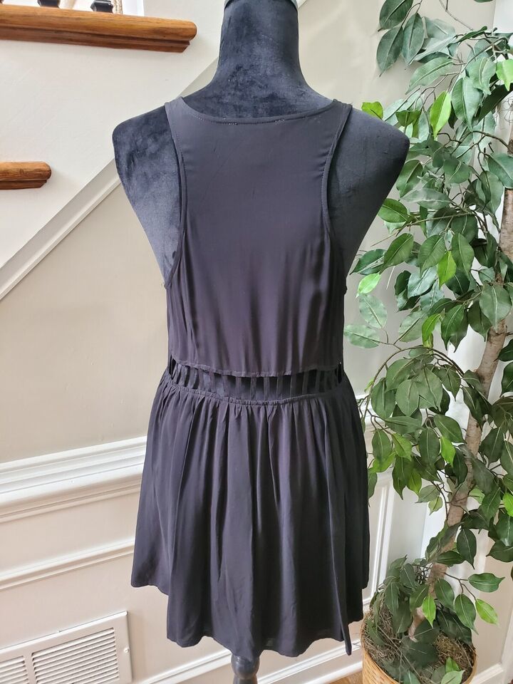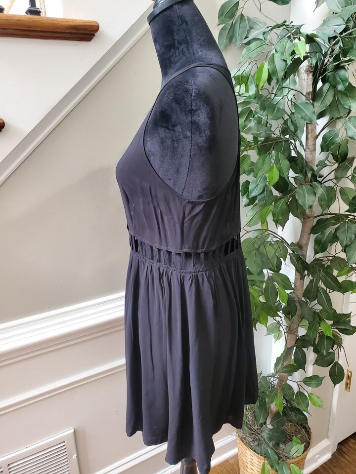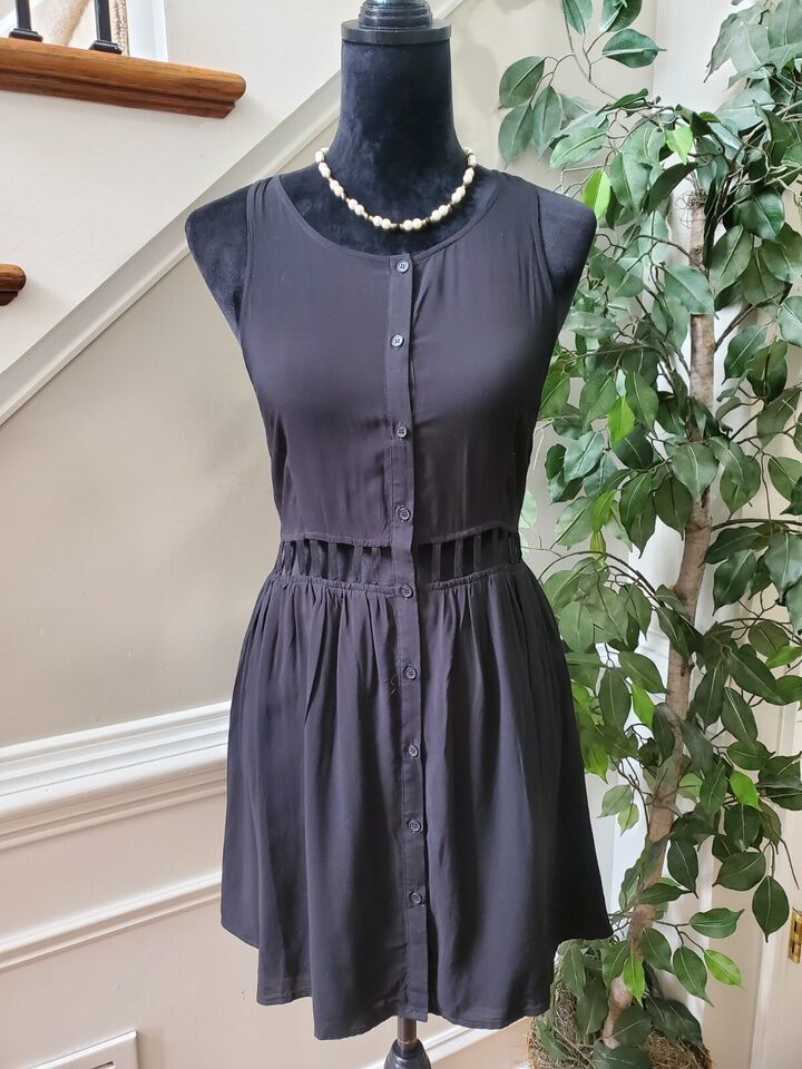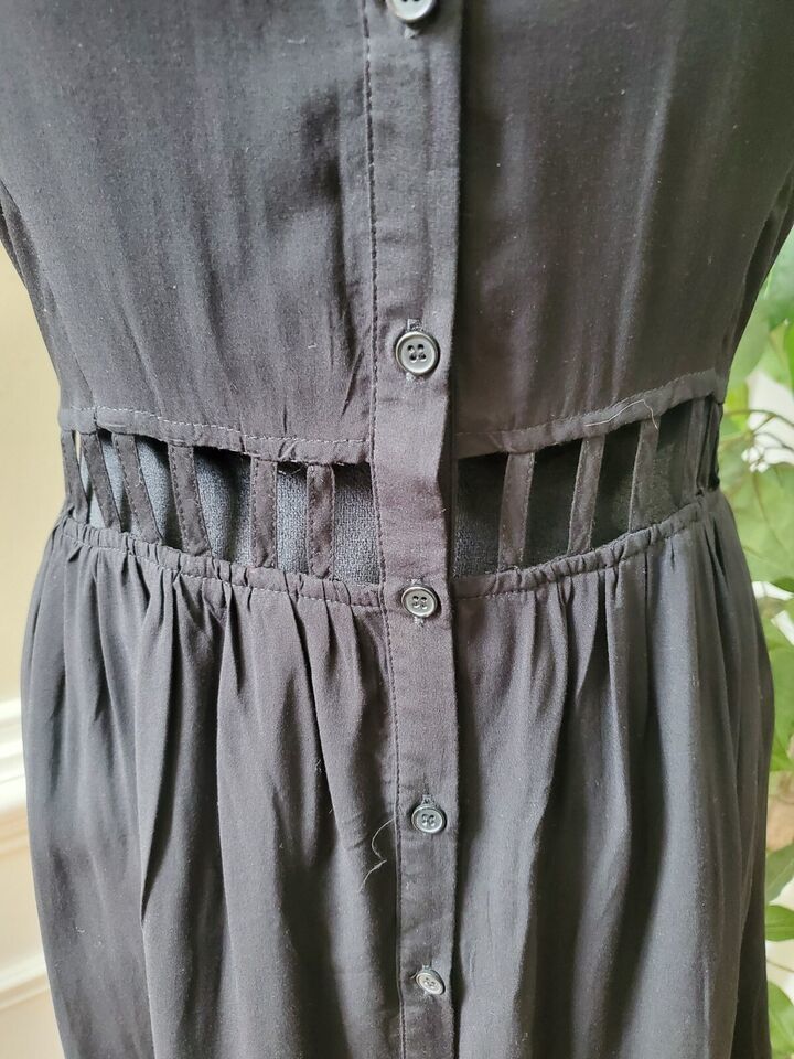 Forever 21 Black 100% Rayon Button Down Cut Out Waist Sleeveless Dress Medium