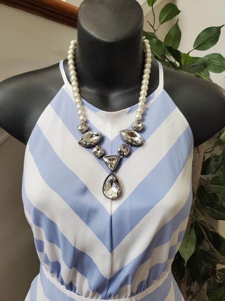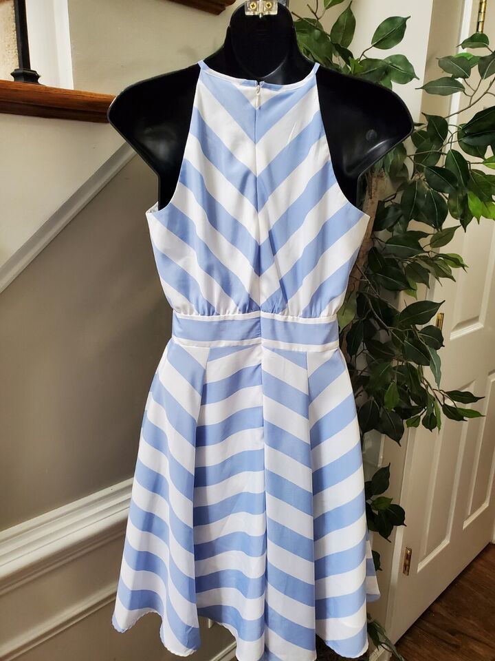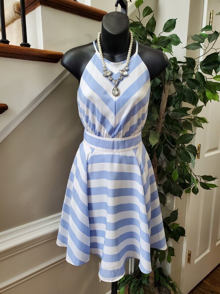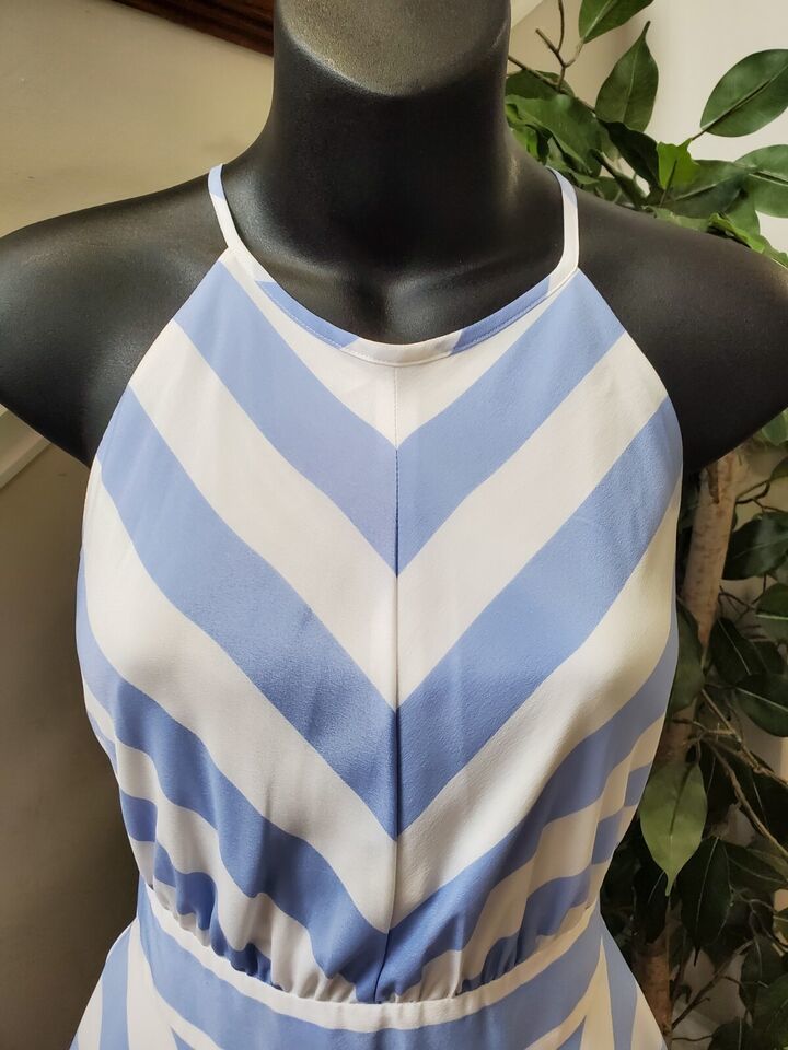 Maison Jules Women Blue Polyester Halter Neck Sleeveless Sleeve Length Dress XS