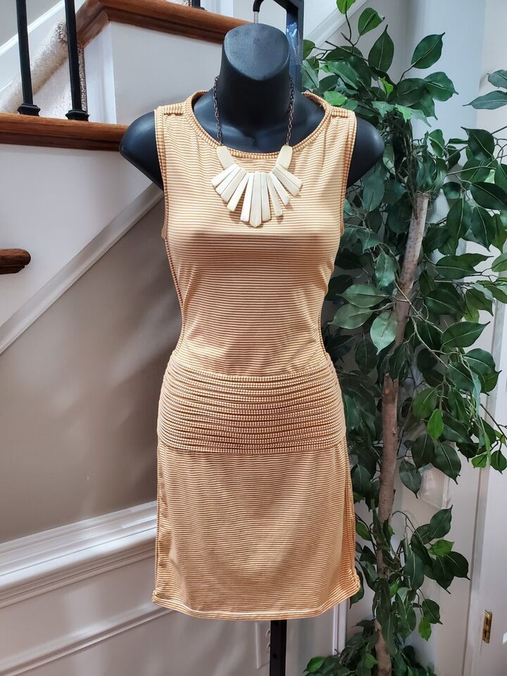 Max Studio Women's Orange Cotton Round Neck Sleeveless Knee Length Dress Size XS