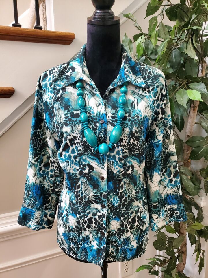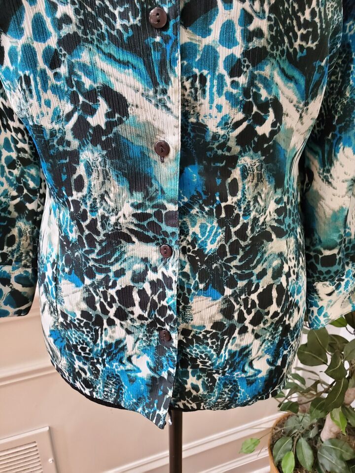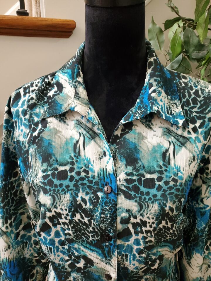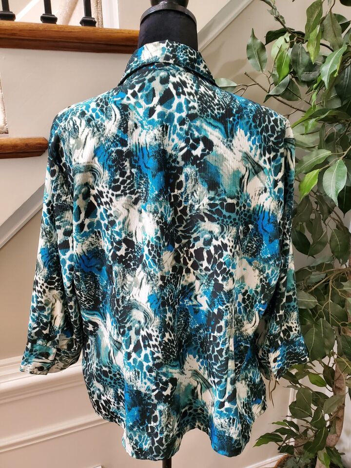 Notations Women's Multicolor Polyester Collared Long Sleeve Button Down Shirt XL.