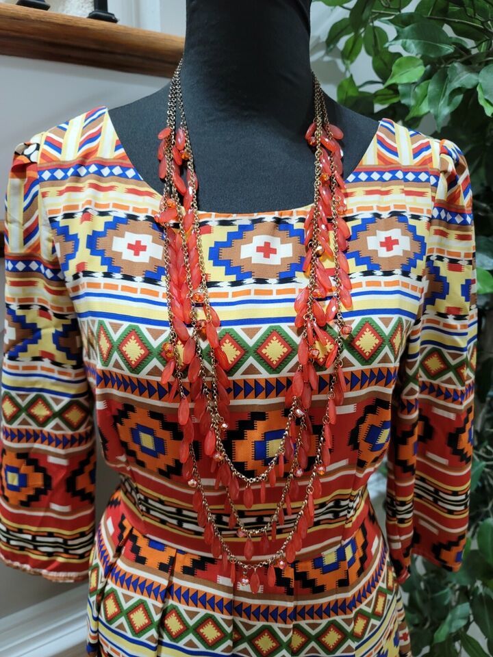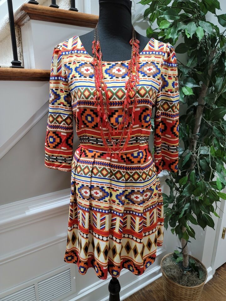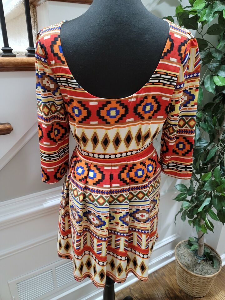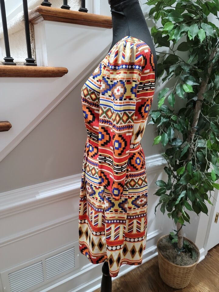 Hello Miss Women Multicolor Polyester Round Neck long Sleeve Knee Length Dress S
