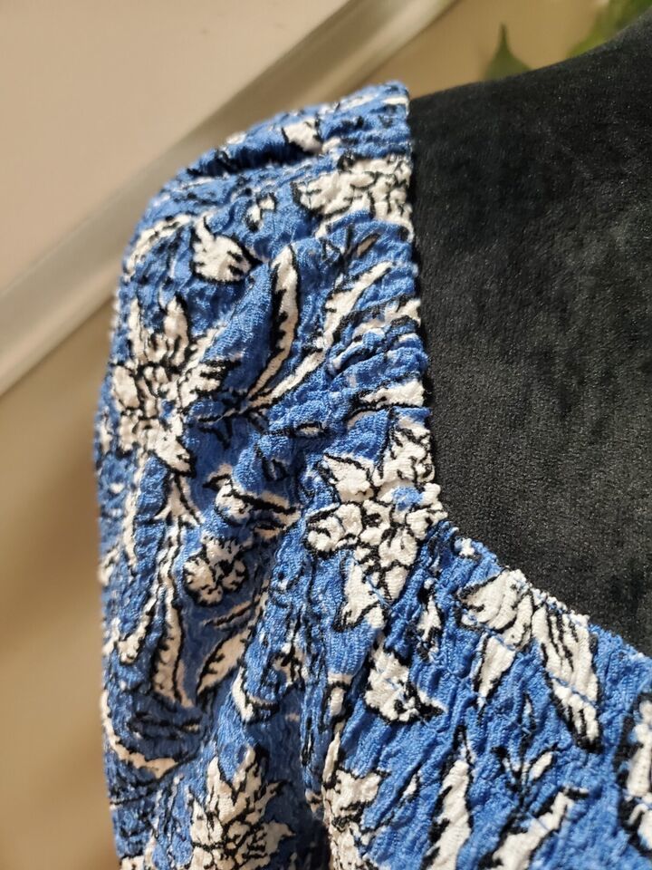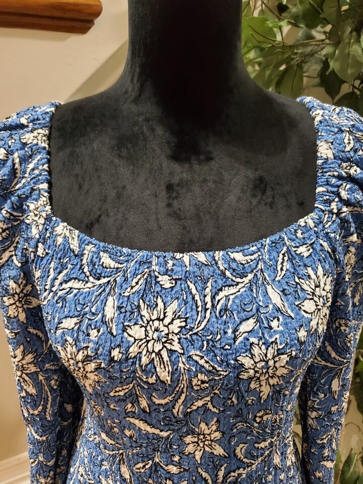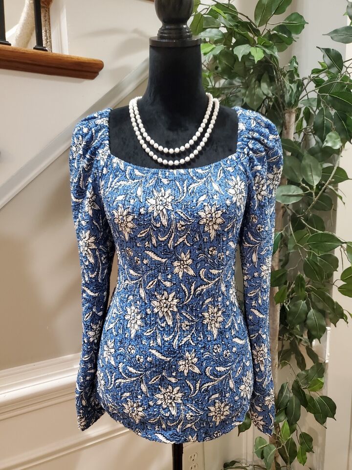 Loft Womems Blue Floral Polyester Square Neck Long Sleeve Top Blouse Size Small