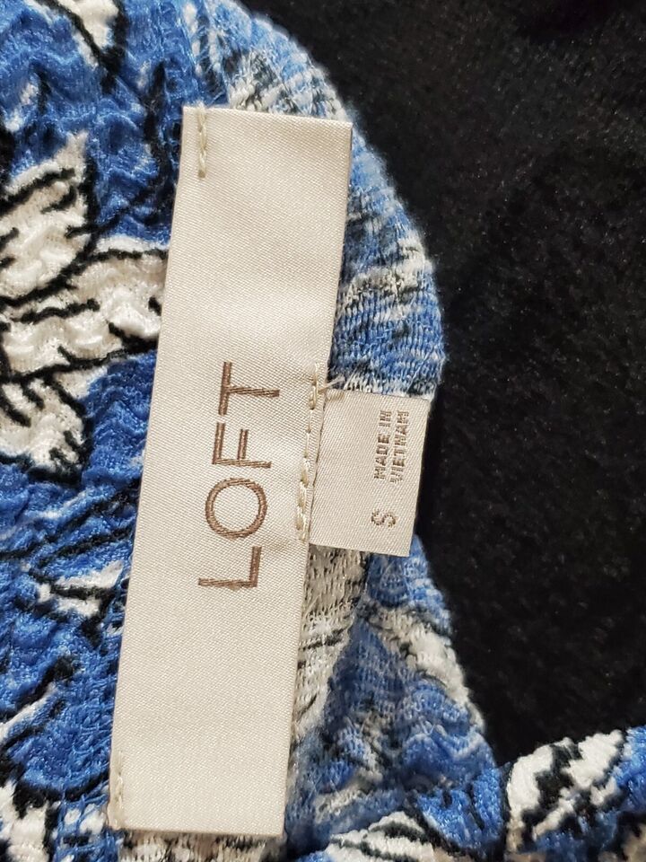 This regular fit blouse in size small features a collarless design, and the polyester material makes it machine washable for easy care. The modern outdoor theme and basic style make it a versatile piece in any woman's collection. Shop now and add this gorgeous Loft blouse to your wardrobe today.