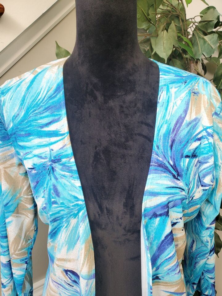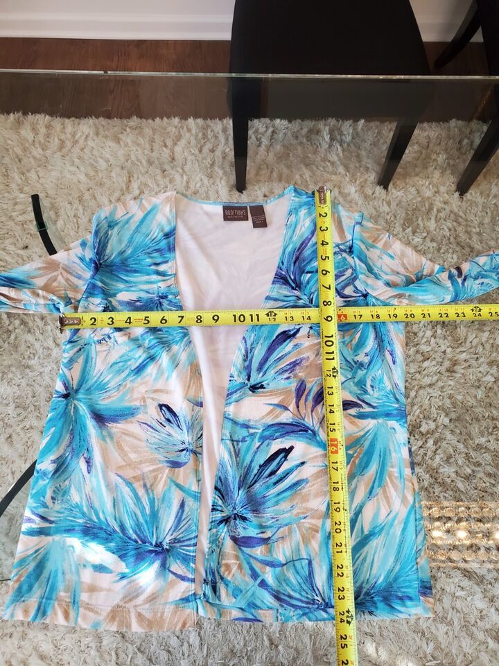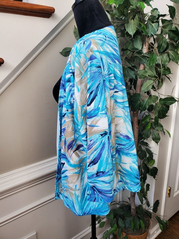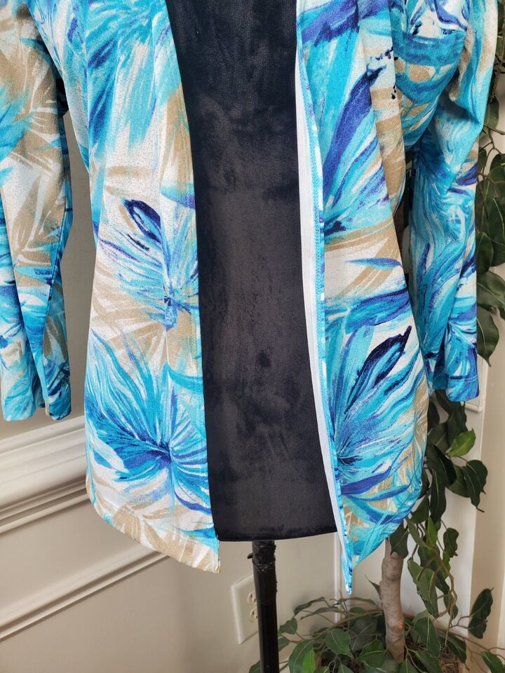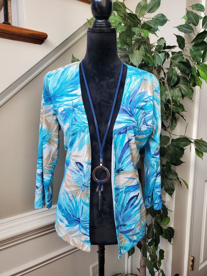 Additions By Chicos Blue Floral Long Sleeve Open Front Cardigan Size Small
