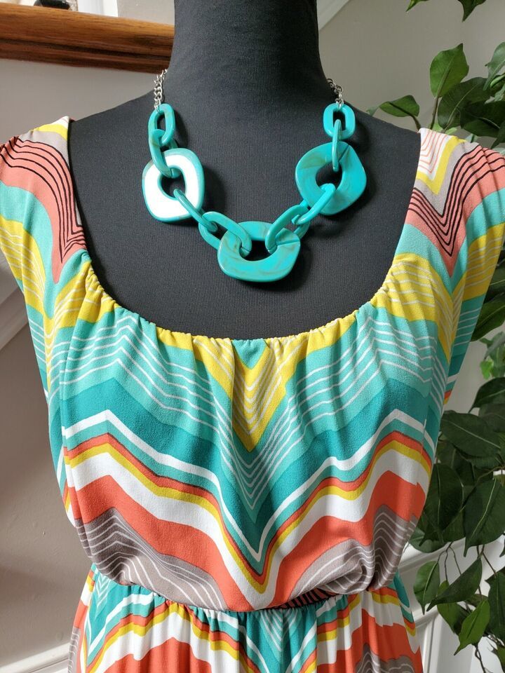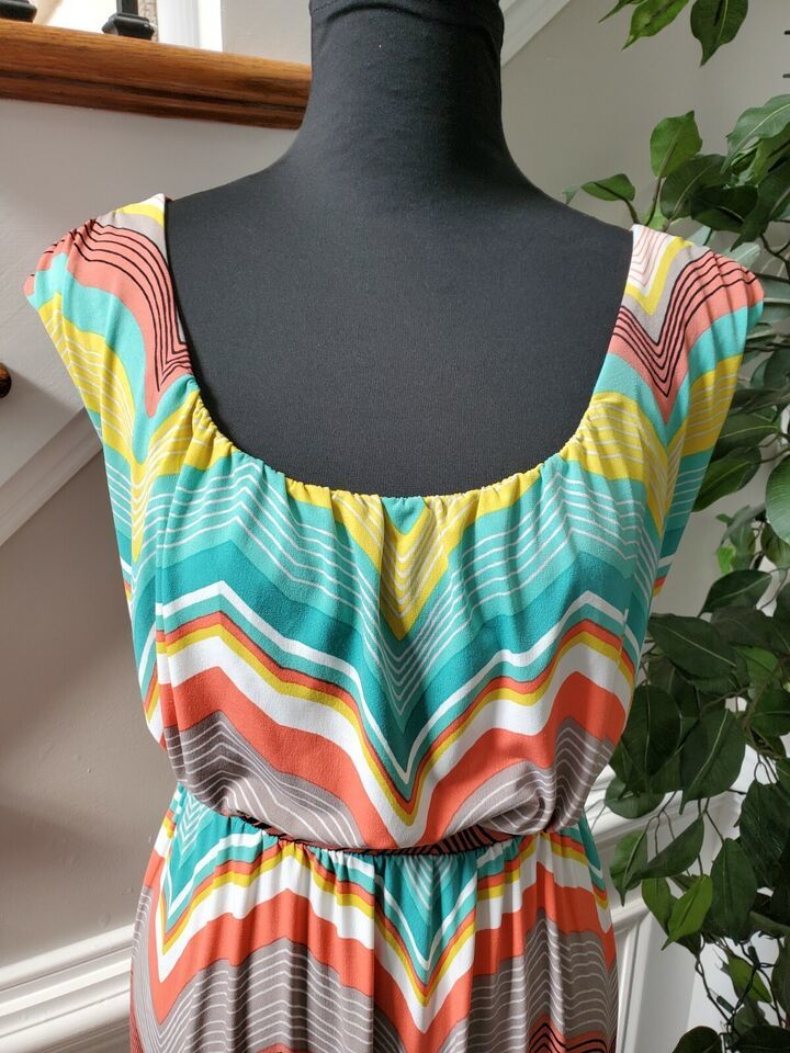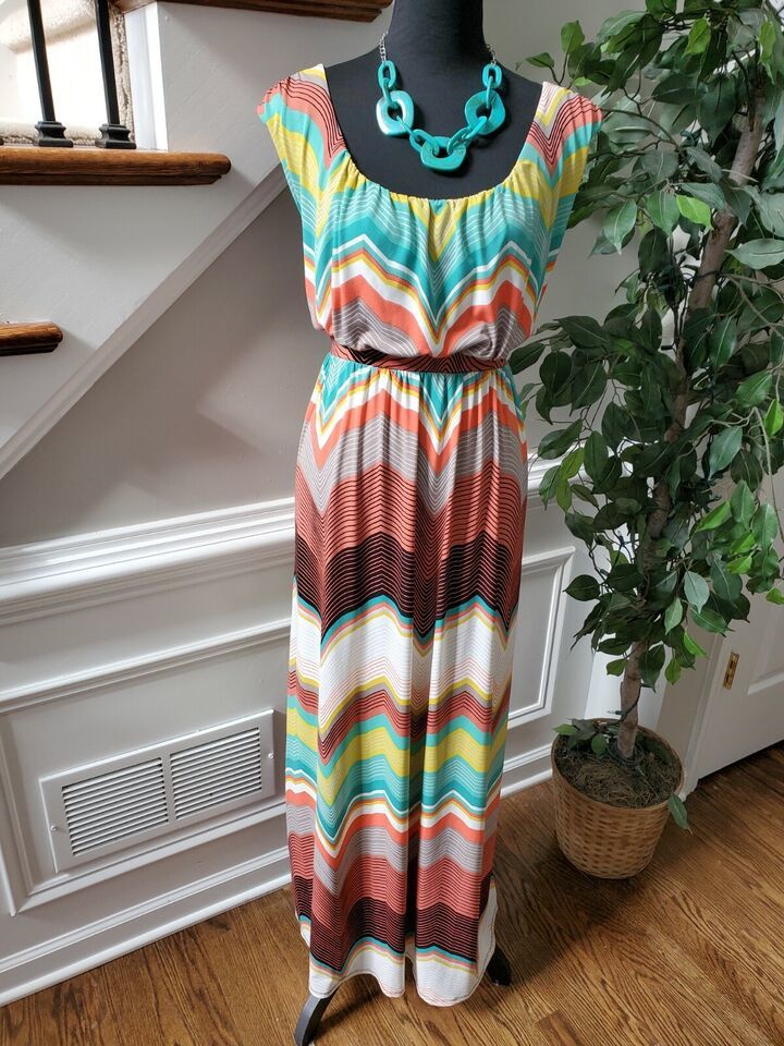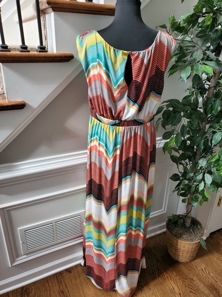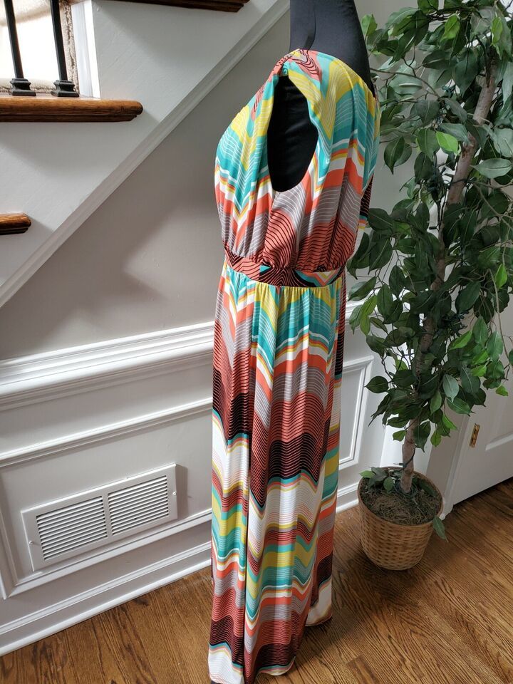 Worthington Women's Multicolor Polyester Scoop Neck Sleeveless Long Maxi Dress L