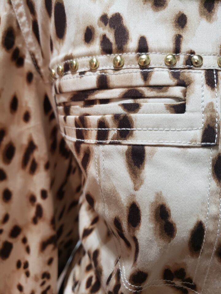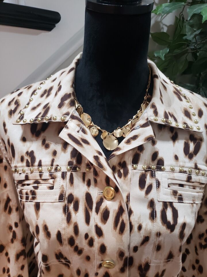 Chico's Women's Beige Leopard 100% Cotton Long Sleeve Button Front Jacket Size 2.