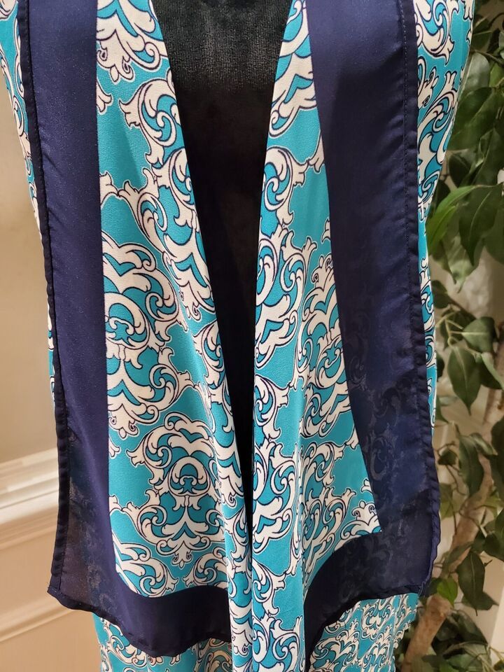 Charming Charlie Blue 100% Polyester Sleeveless Open Front Kimono S