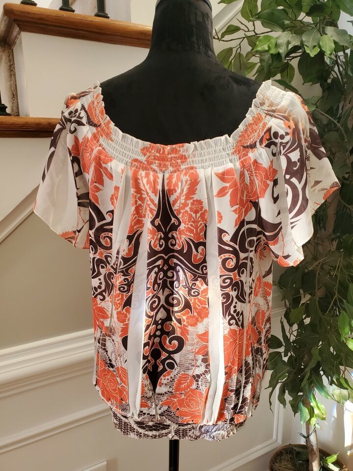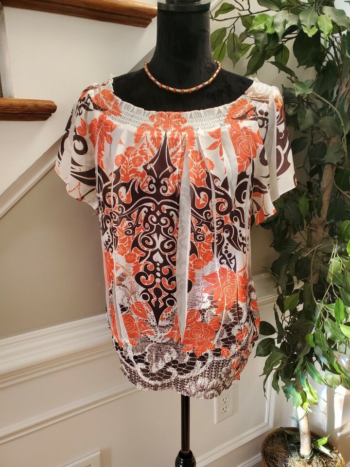 Cato Women's Multicolor Polyester Round Neck Short Sleeve Casual Blouse Size M