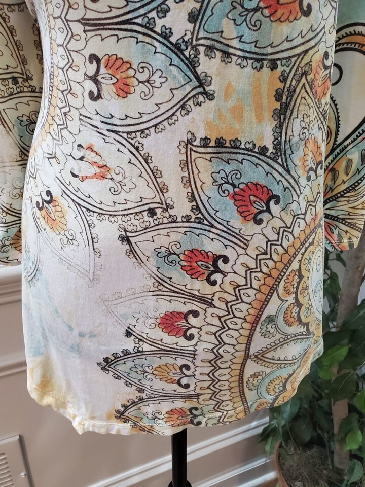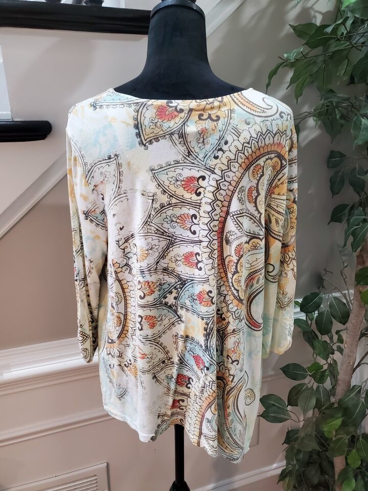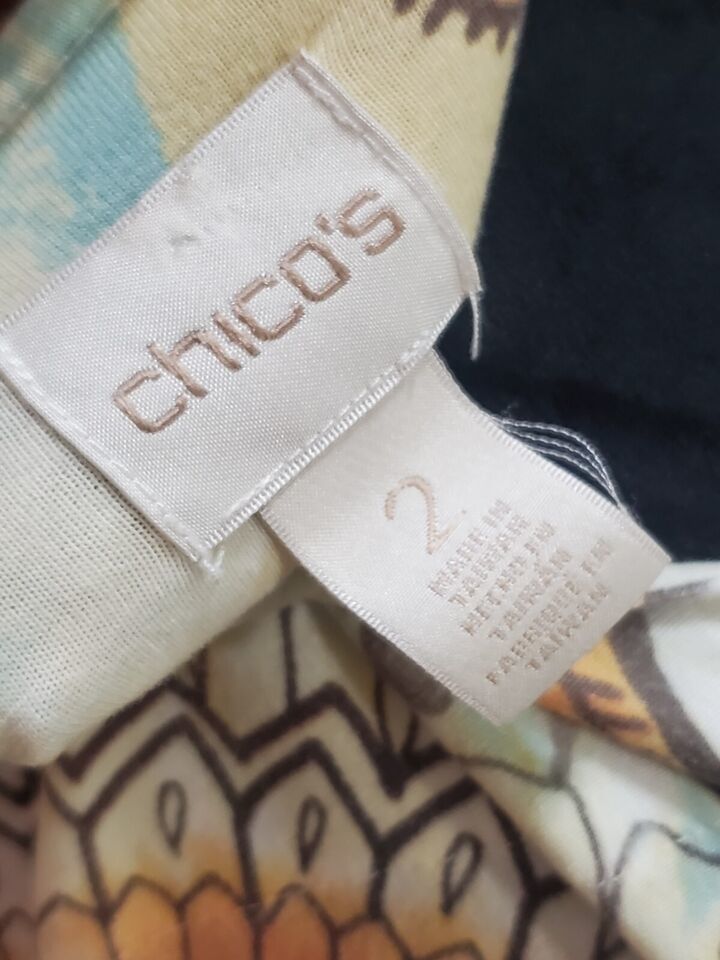 Chico's Women's Multicolor Rayon Round Neck Long Sleeve Casual Top Blouse Size 2.