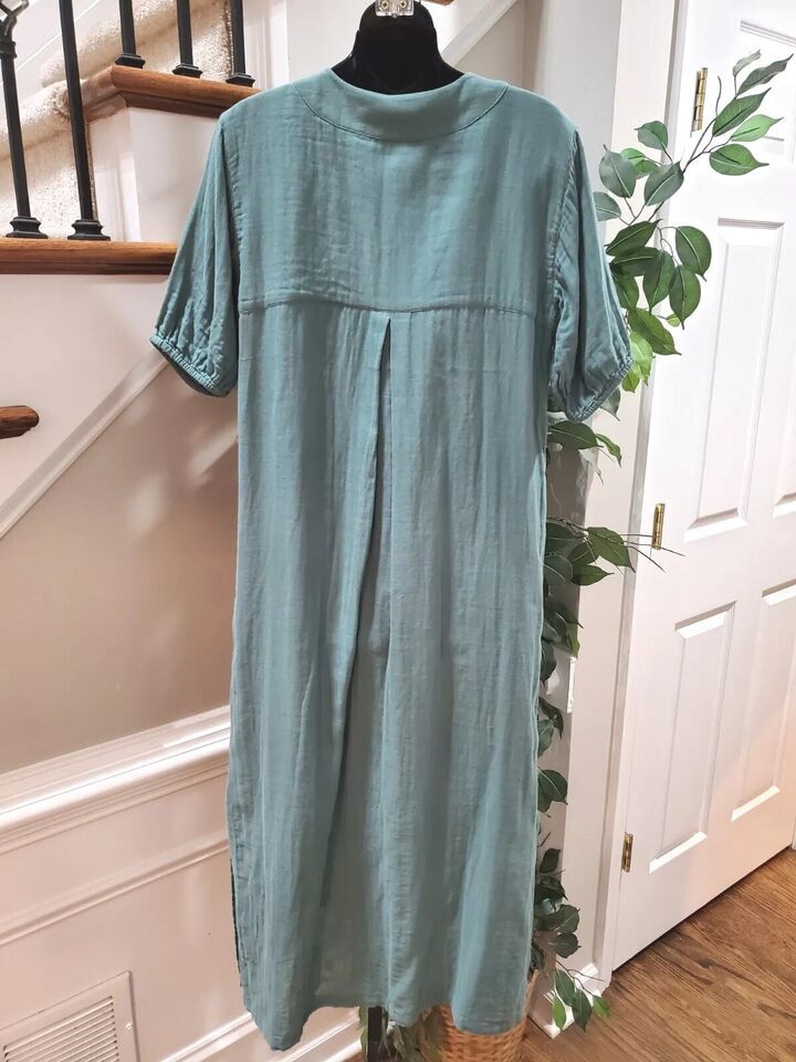 Lake Womens Green 100% Cotton V Neck Casual Short Sleeve Long Maxi Dress Small