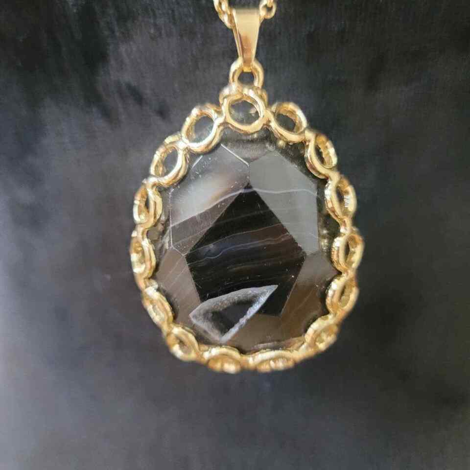 Womens Gold Plated Big Glass Black Charm Pendant Necklace