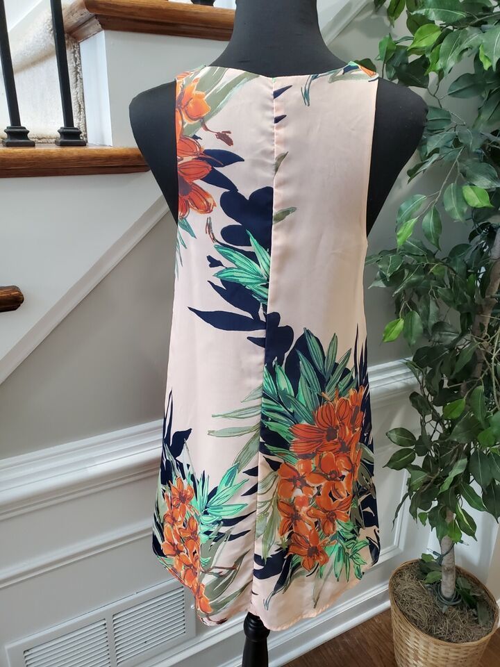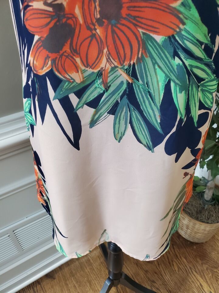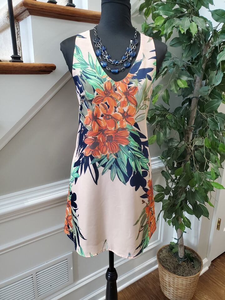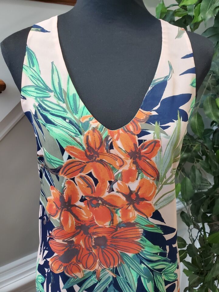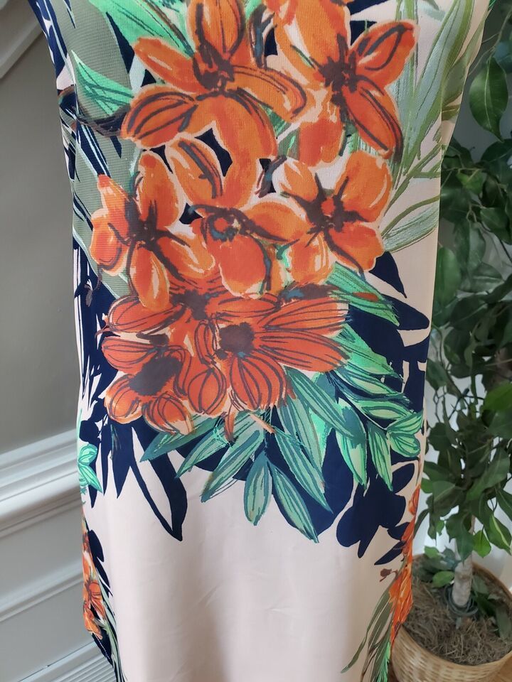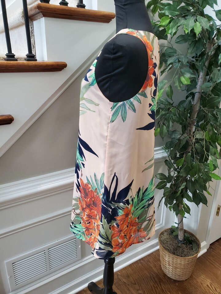 Pearle 88 Women Floral 100% Polyester V-Neck Sleeveless Knee Length Dress S