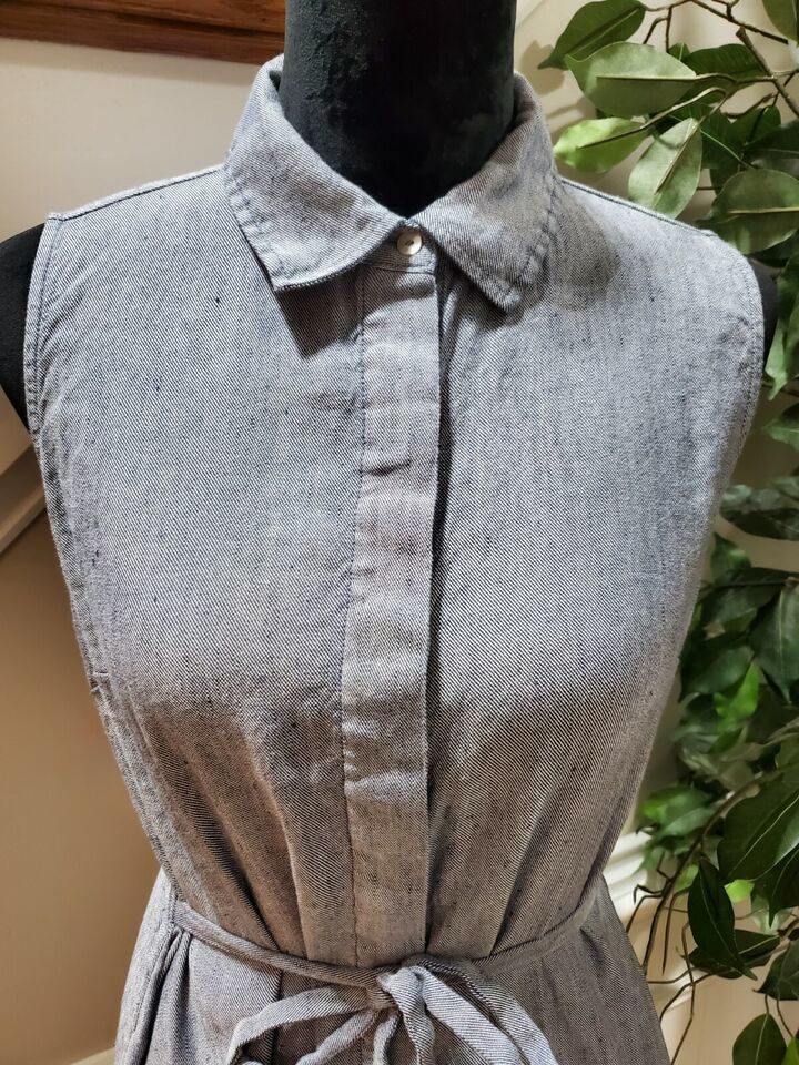 Nicole Miller Women's Gray Cotton Collared Sleeveless Casual Knee Length Dress 4