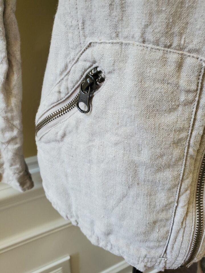 Garnet Hill Linen Bomber Zip Up Jacket 04