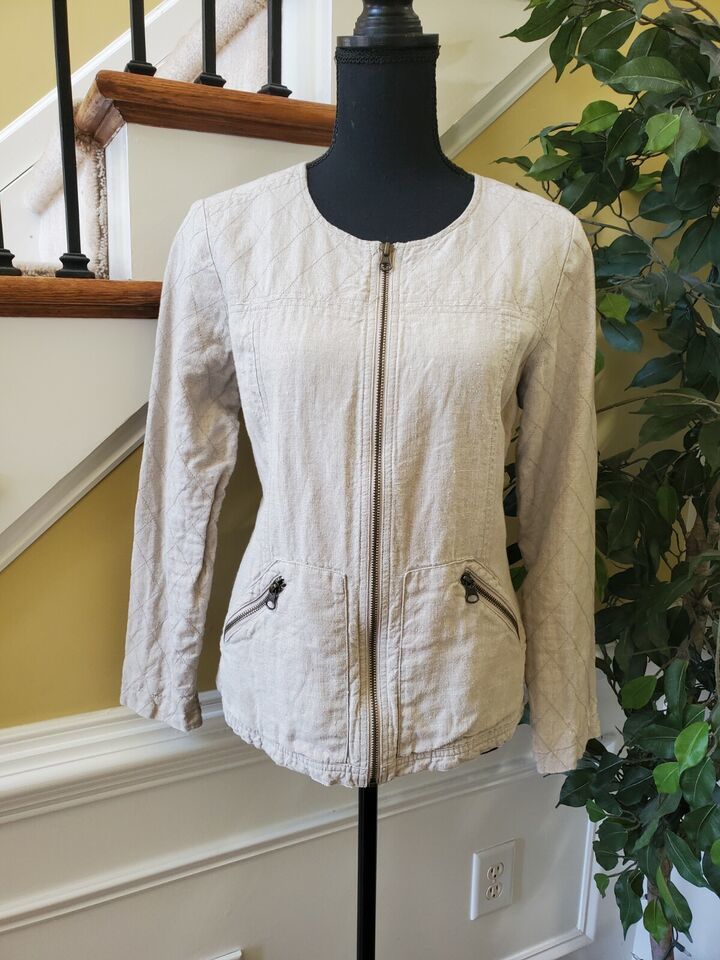 Garnet Hill Linen Bomber Zip Up Jacket 04. Condition is "Pre-owned". Shipped with USPS Priority Mail.