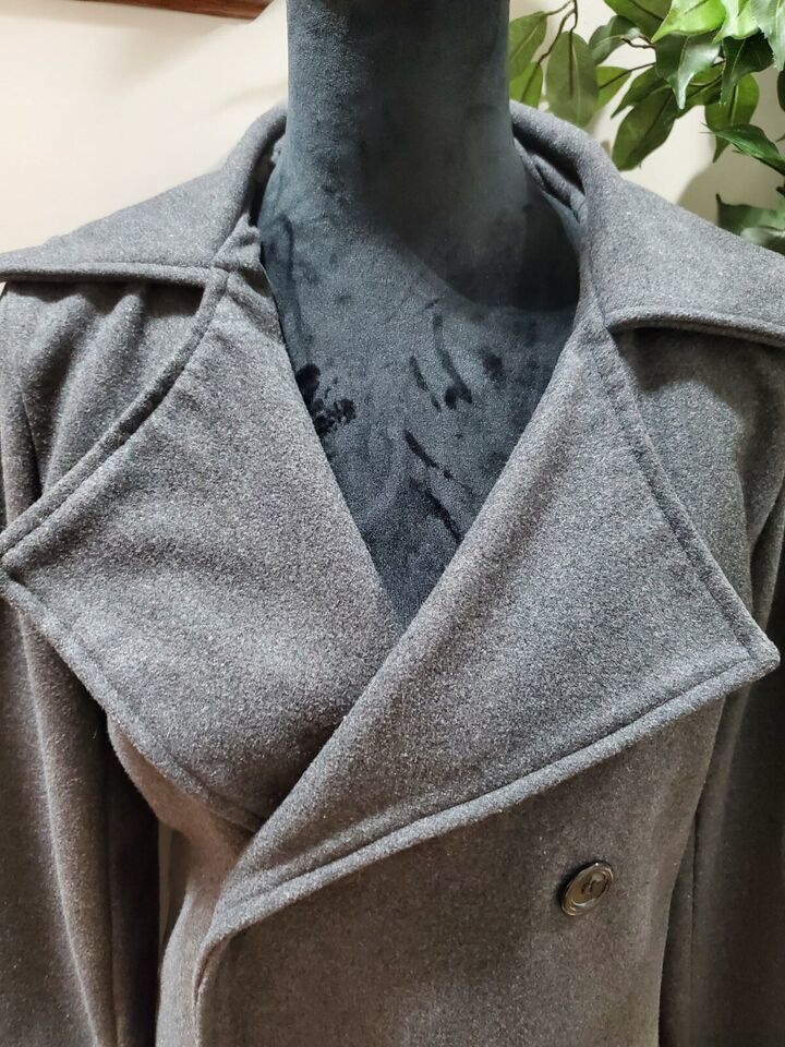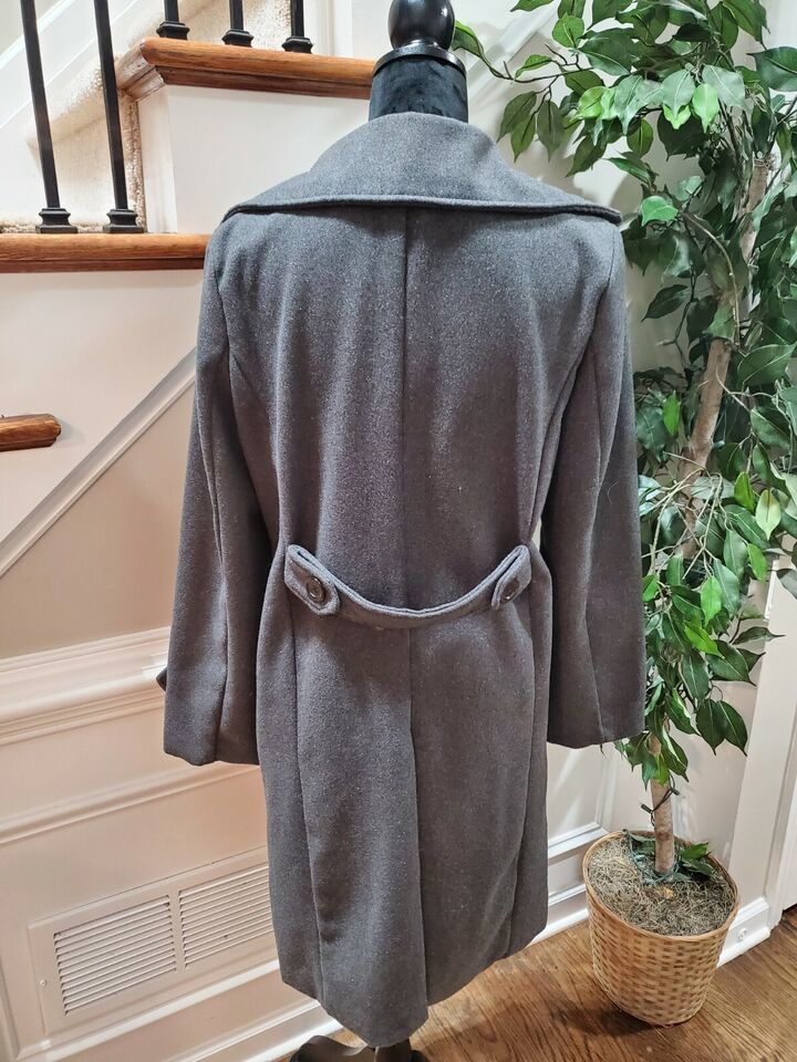 Gray Women Solid Long Sleeve Double Breasted Fitted Casual OverCoat Size X-Large
