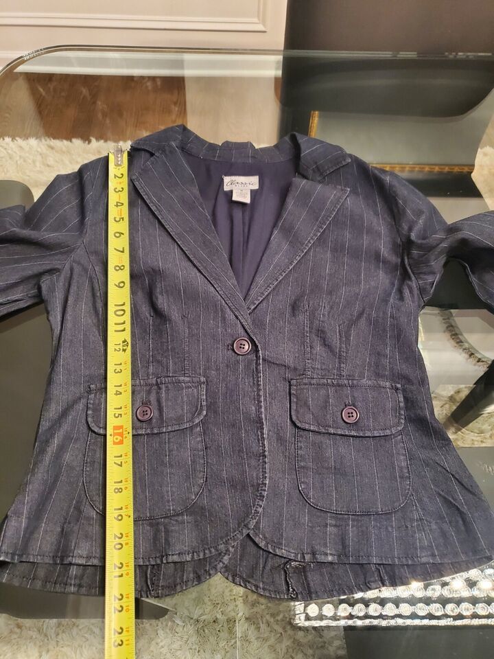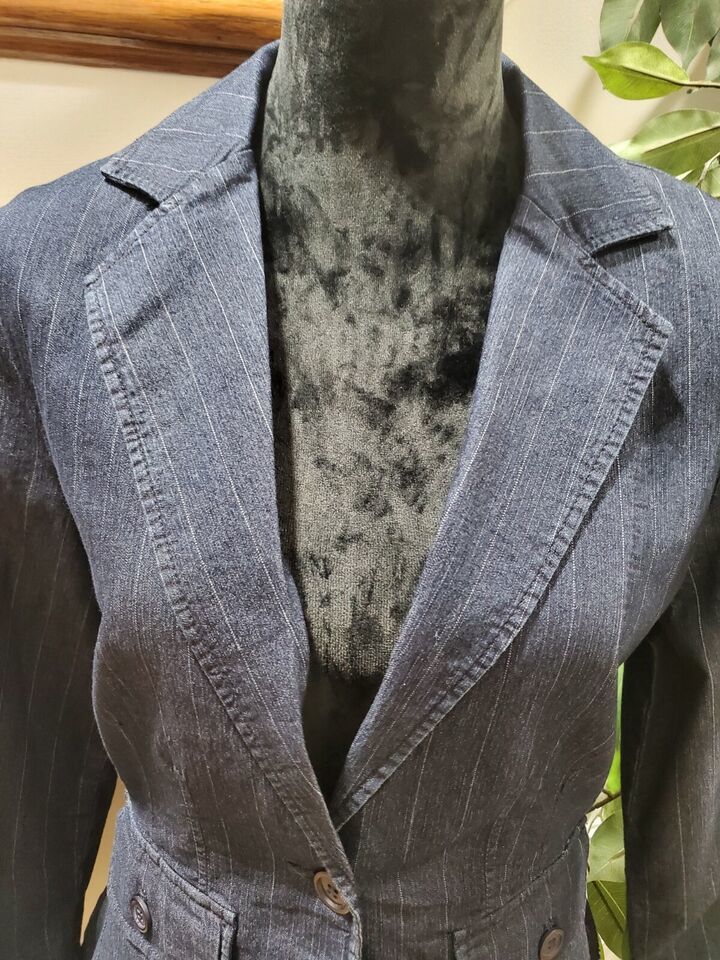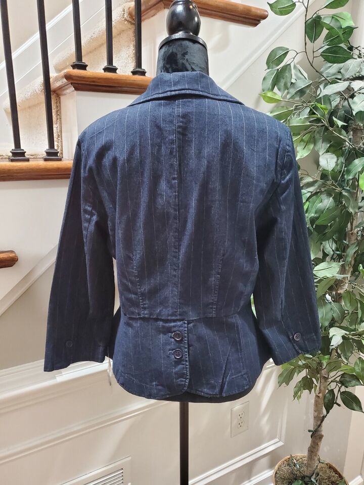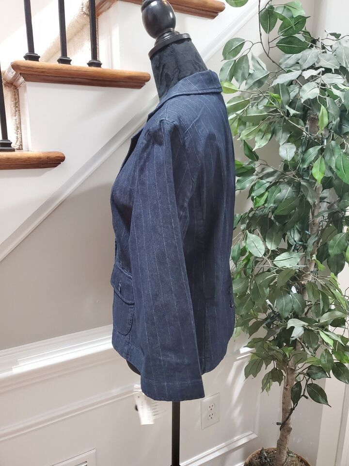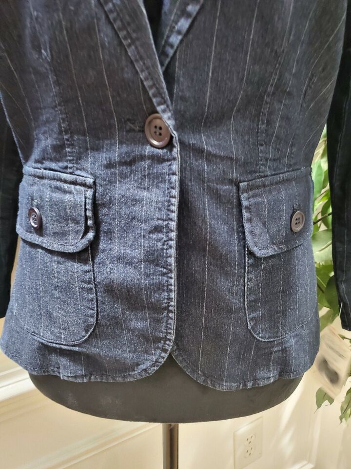 Classic Blues Women Denim Cotton Long Sleeve Single Breasted Blazer Size Medium