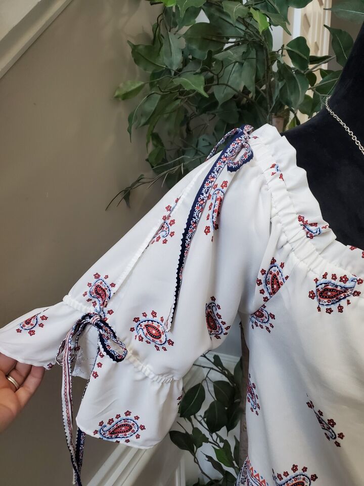 C Womens White Paisley 100% Polyester Round Neck Short Sleeve Top Blouse X-Large.