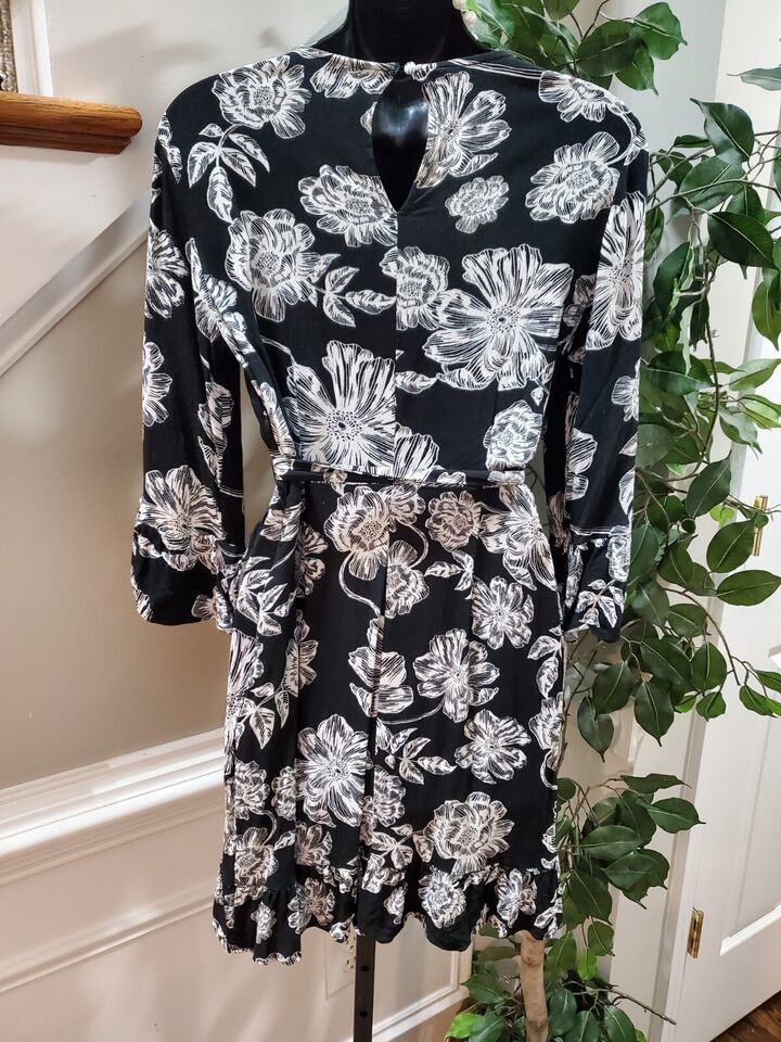 Who What Wear Women Black Rayon Round Neck Long Sleeve Knee Length Dress Size S.