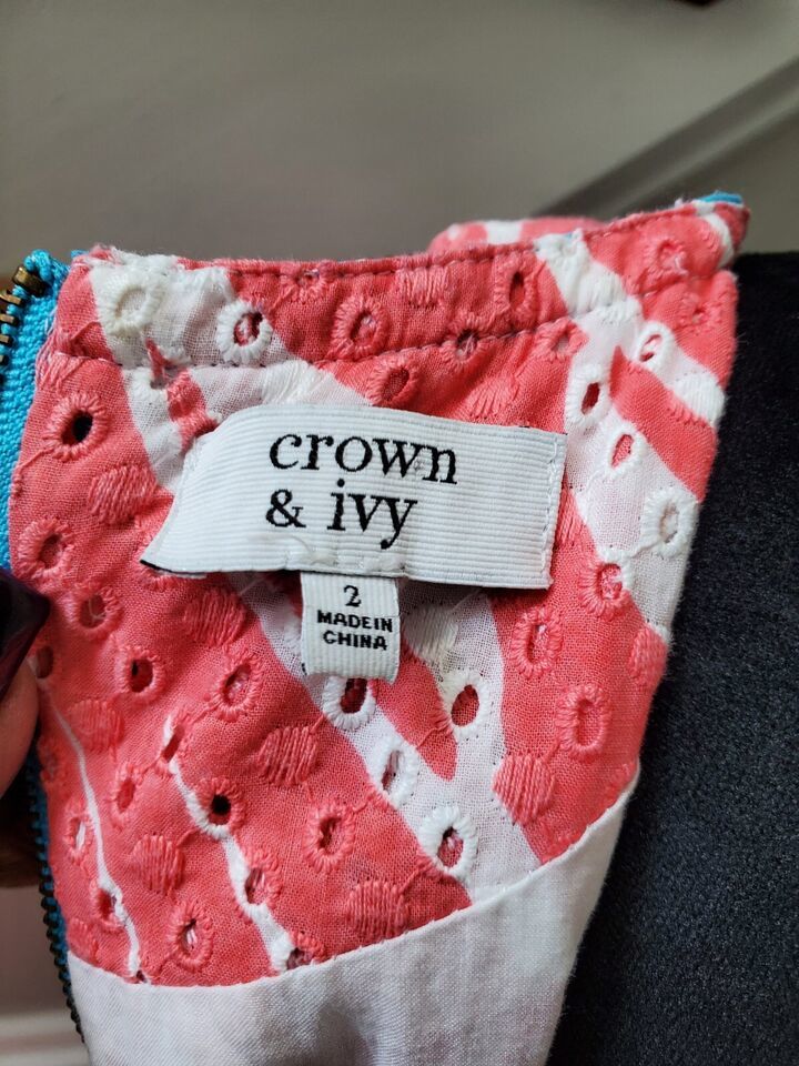 Crown Ivy Women's Pink 100% Cotton V-Neck Sleeveless Knee Length Dress Size 2.