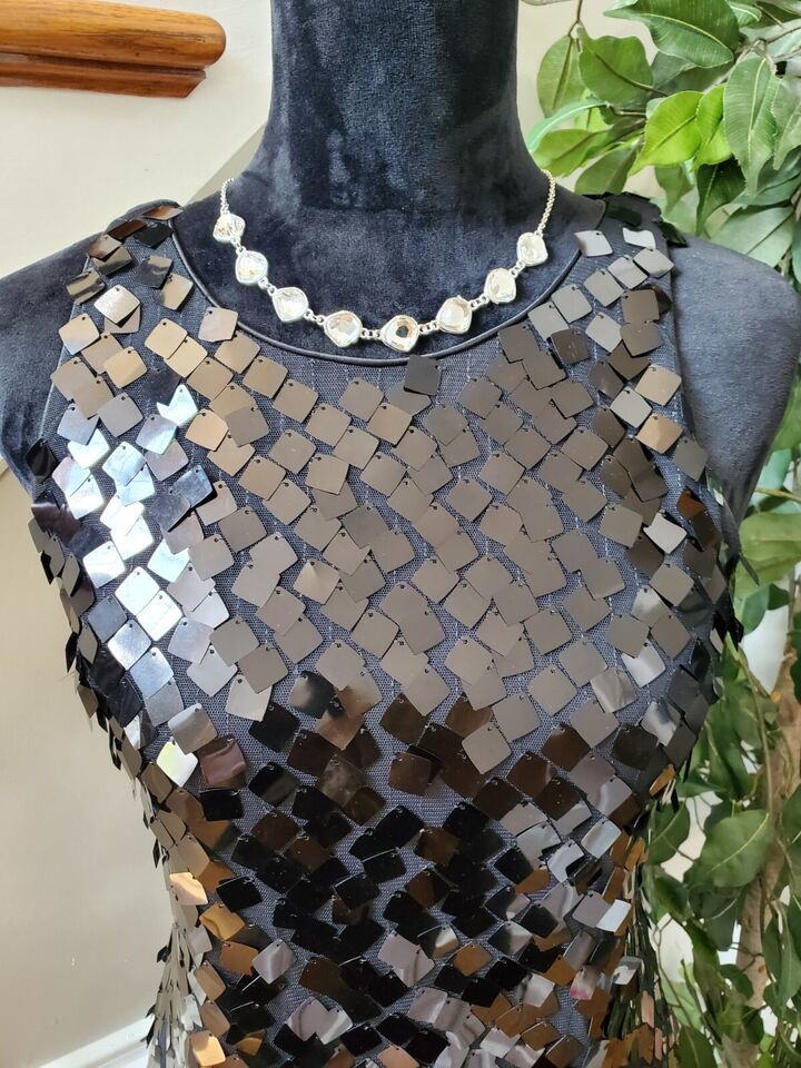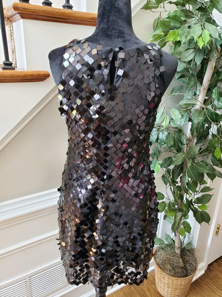 White House Black Market Sequin Round Neck Sleeveless Knee Length Dress Size 2
